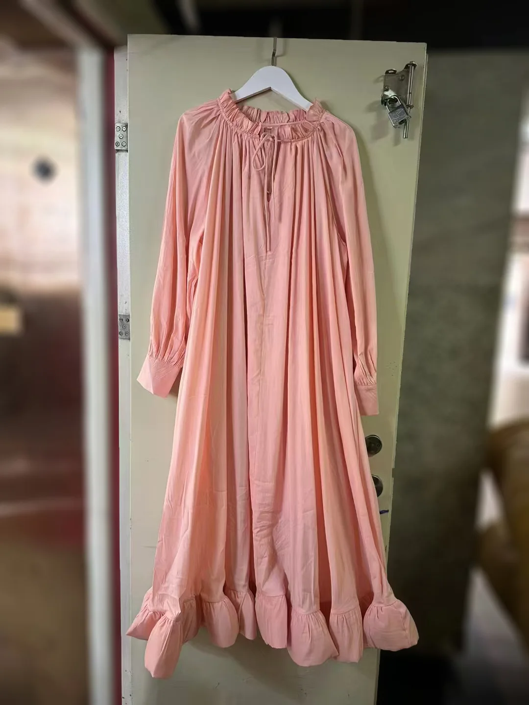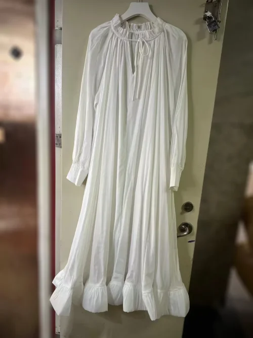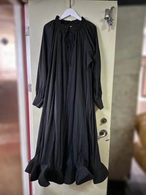 Product Name: 2025 Spring Summer Collection Casual Maxi Dress Large Swing Ruffled Sleeves Neck Ear Edge Strap Drawstring Long-Sleeved Loose