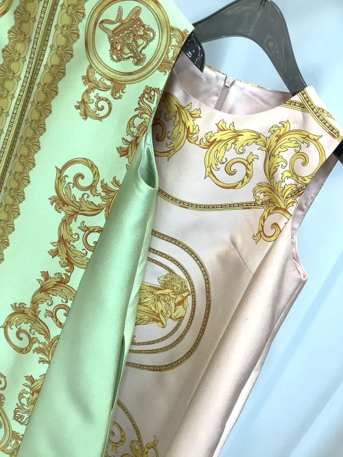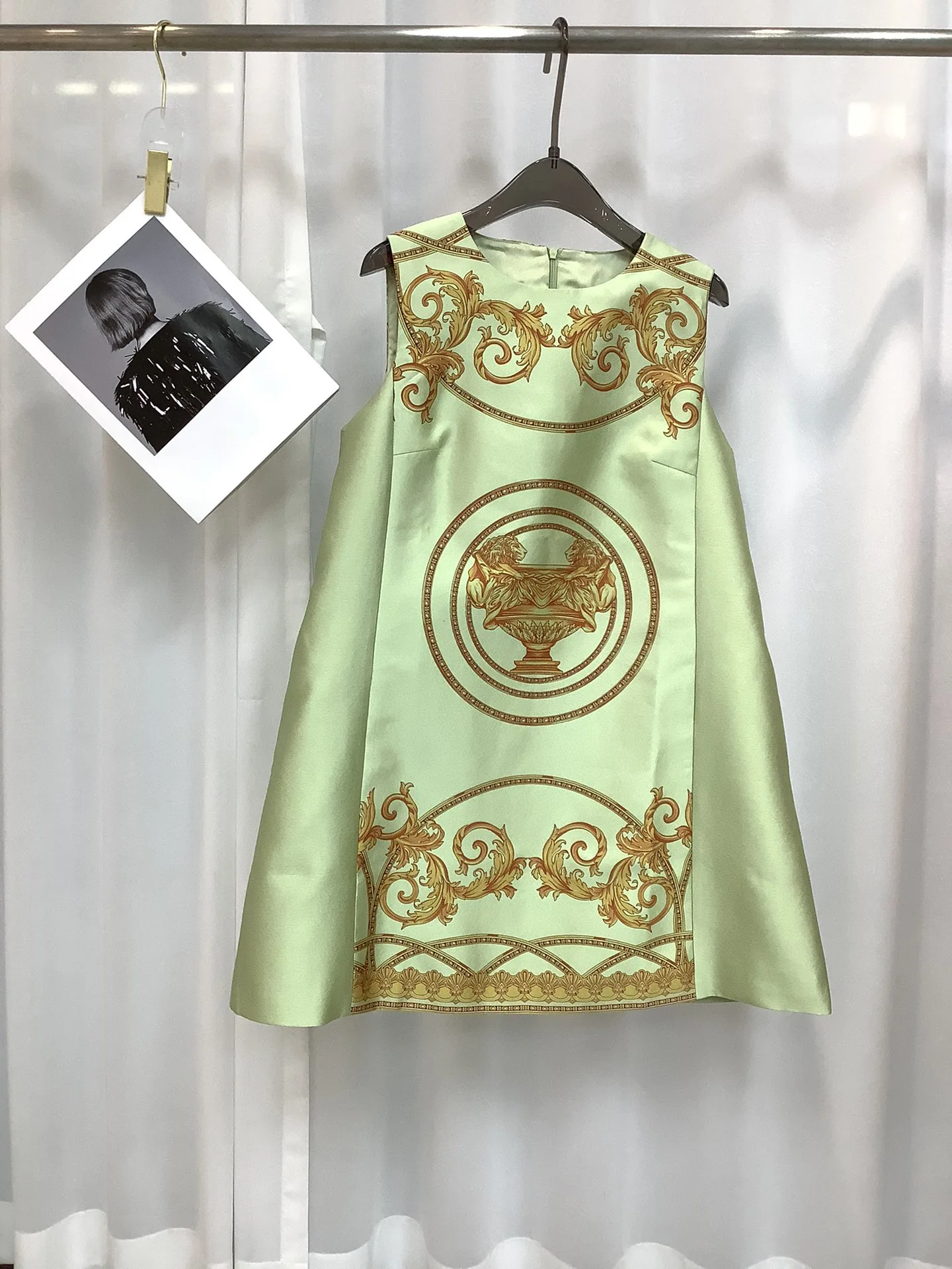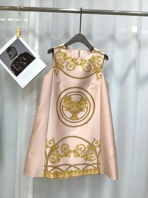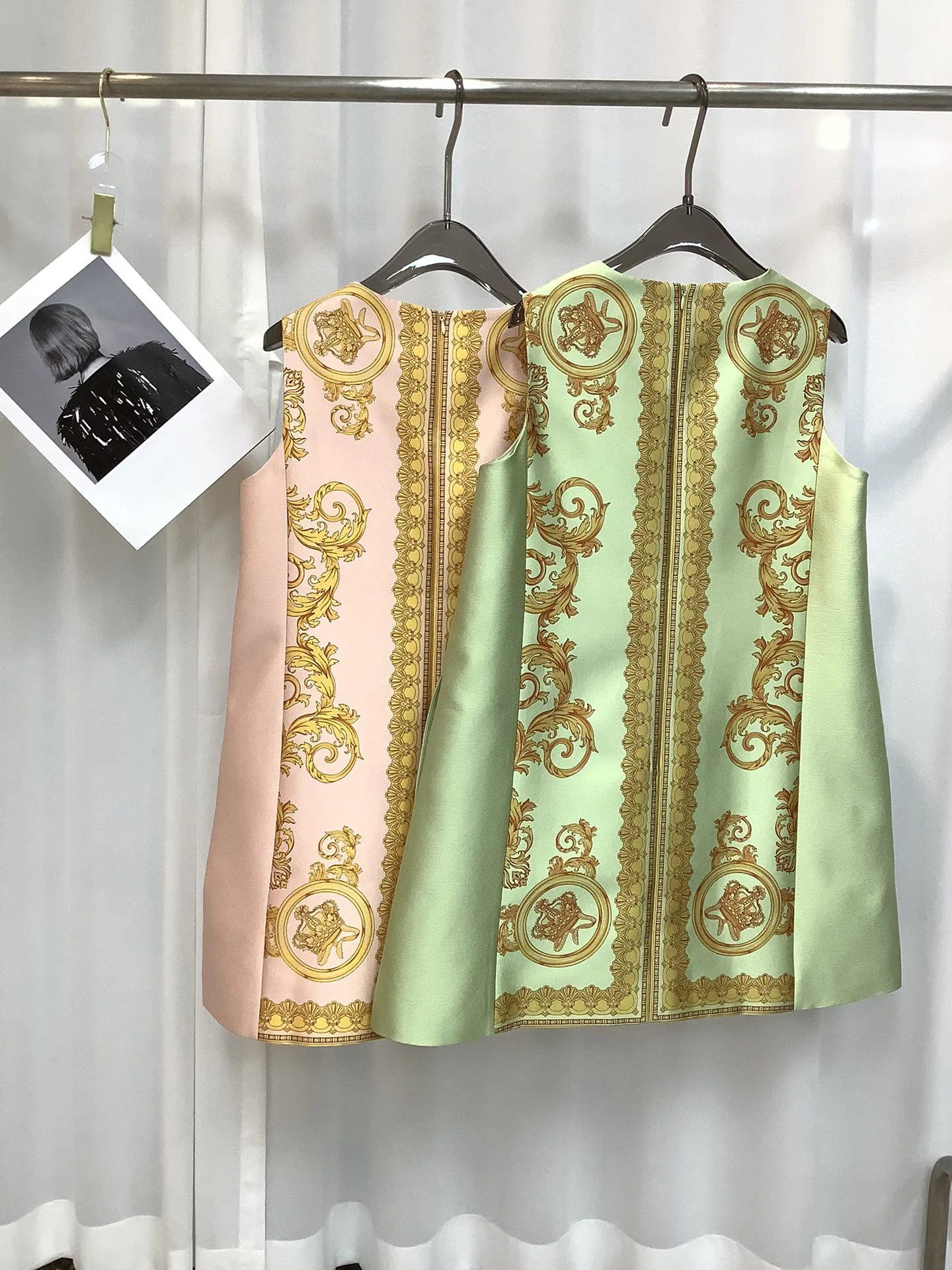 Product Name: 2025 Spring Summer Mini Dress Women’s Retro Gold Floral Printed O-Neck Vessel Style Loose A-Line Short Skirt Cross-Border Casual