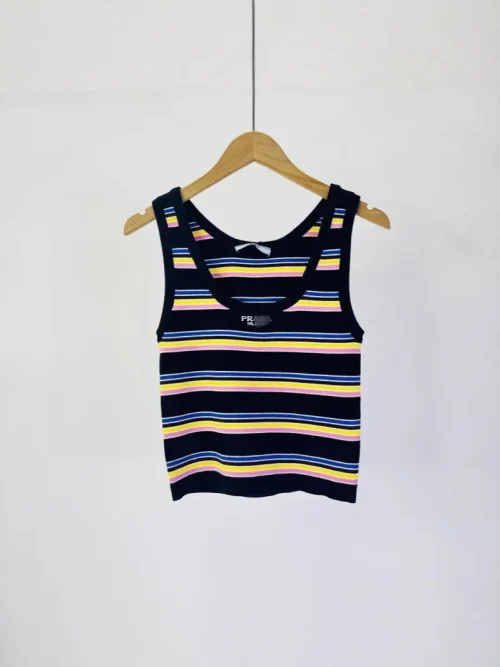 Product Name: 2025 Summer Casual Style Women’s Cute Sweet Girl Colorful Striped Short Dress U-Shaped Collar Sleeveless Knitted