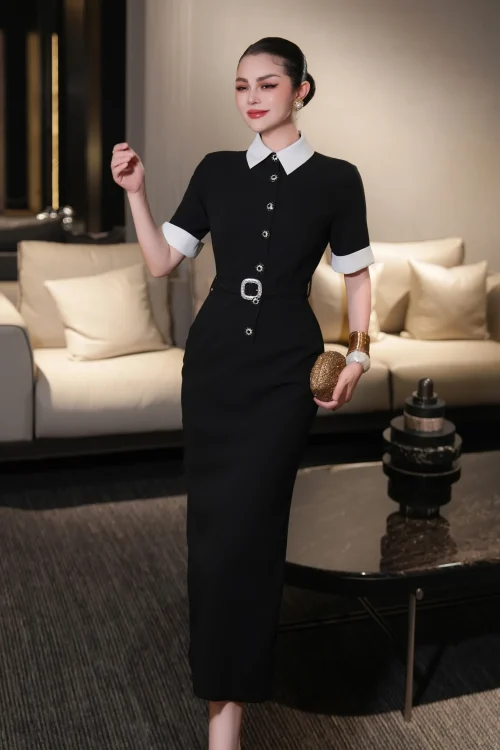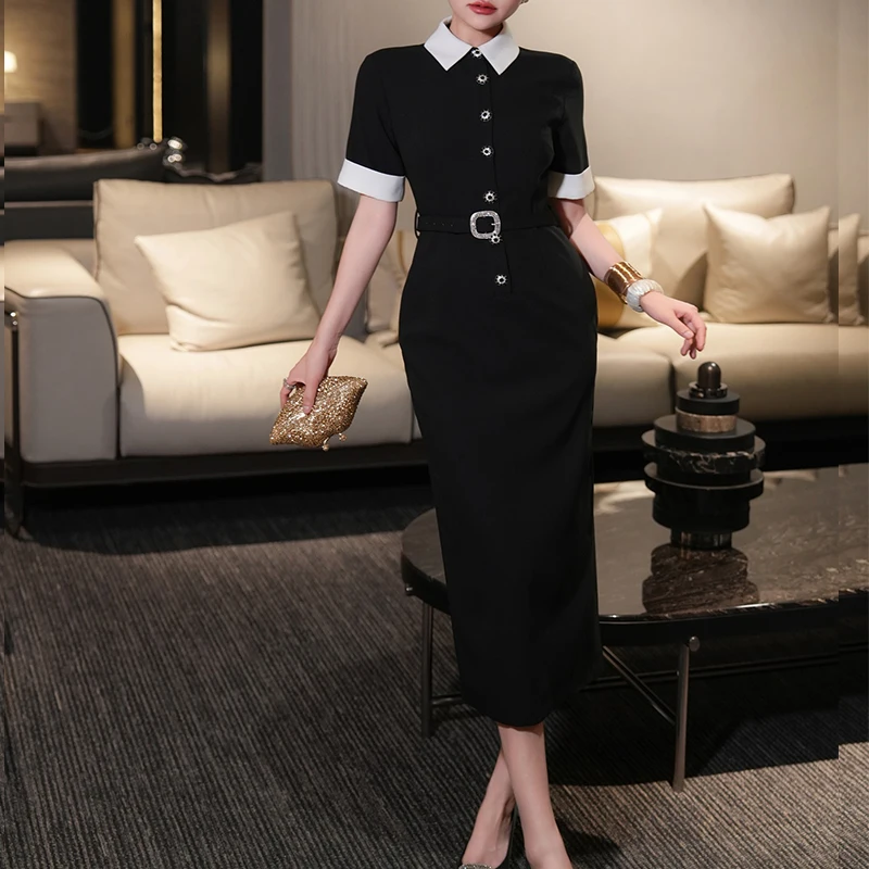 Product Name: 2025 Summer New Europe and the United States Big Black and White Color Shirt Skirt Split Buttock Short-sleeved Casual Dress