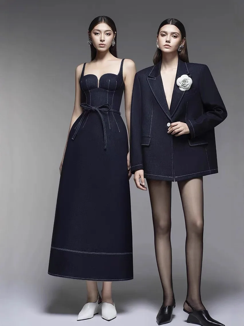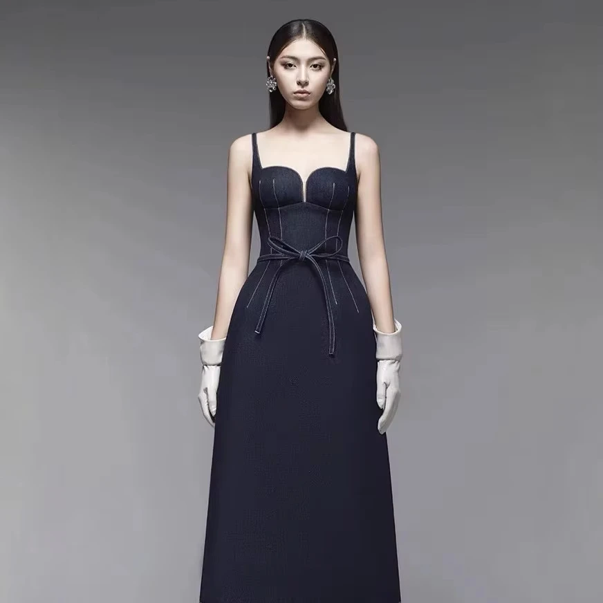 Product Name: 2025 Summer New Fashion Luxury High Waist Halter Women Dress Slim Denim Sexy Elegant Party Long Casual Dress