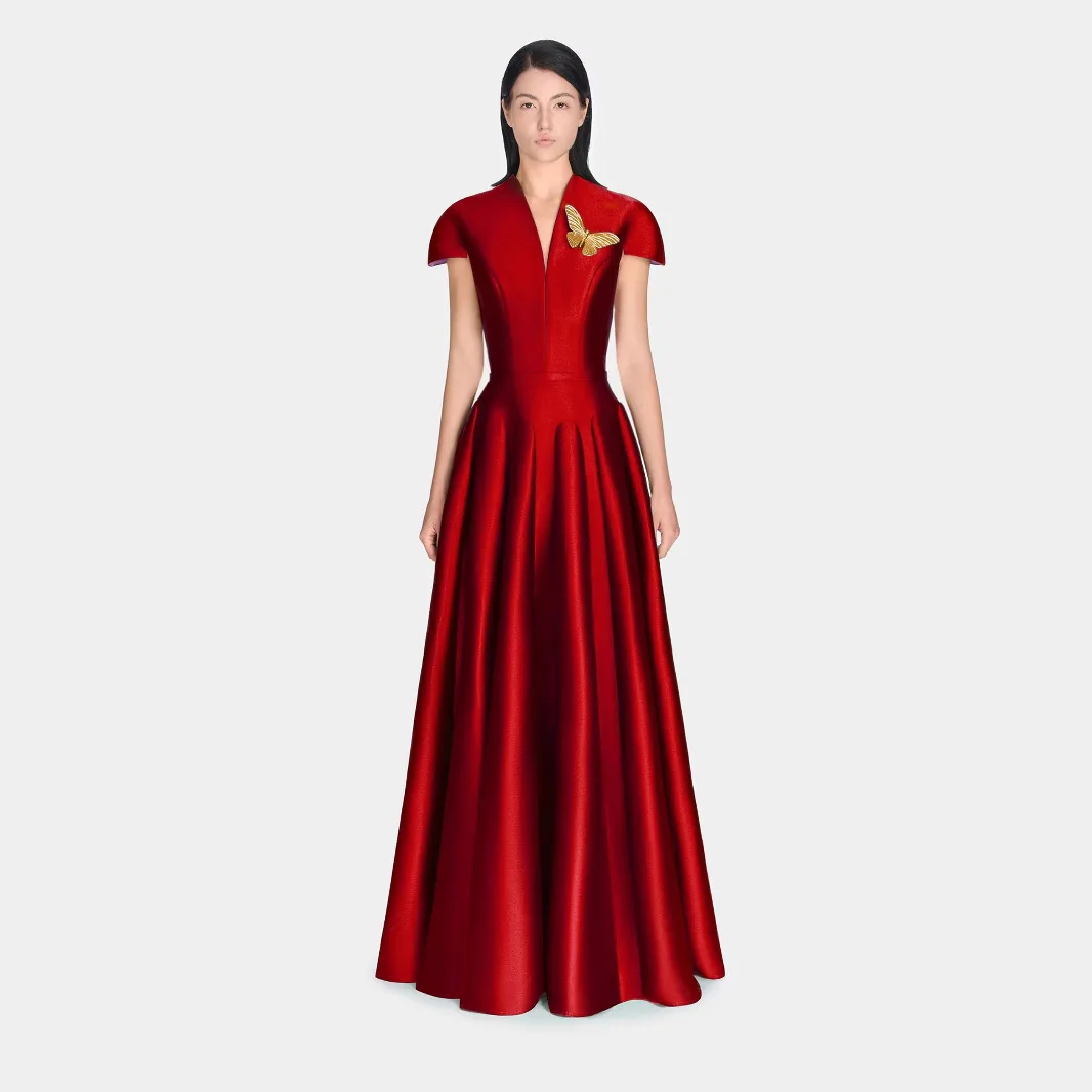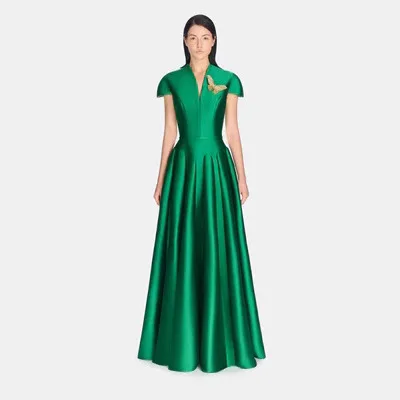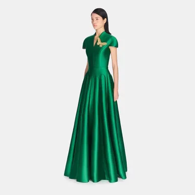 Product Name: 2025 Summer New High Quality Fashion V-neck Satin Long Evening Dress Slim Party Green Elegant Women’s Dresses