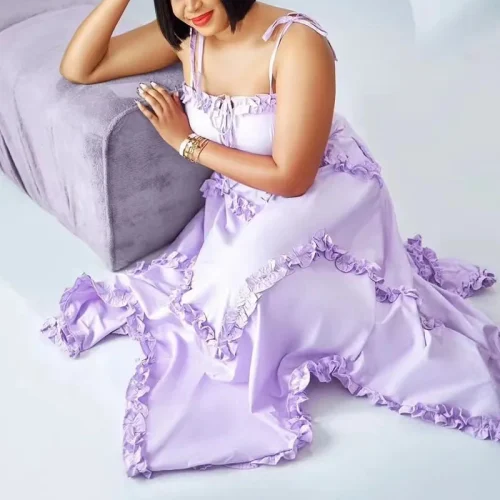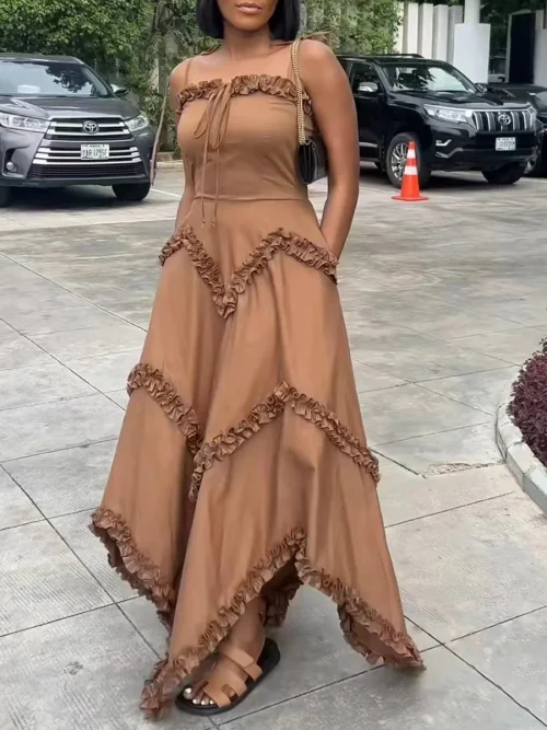 2025 Summer Women’s High-End Slim-Fit Dress Runway Fashion Loose Strapless Edible Tree-Fungus Pleated Irregular Long Party
