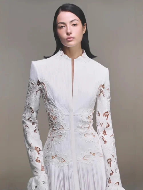 Product Name: 2025 Vintage Casual Sexy Flare Sleeve Lace Long Dress New Temptation Empire Front Breathable Hollow Design for Spring Summer