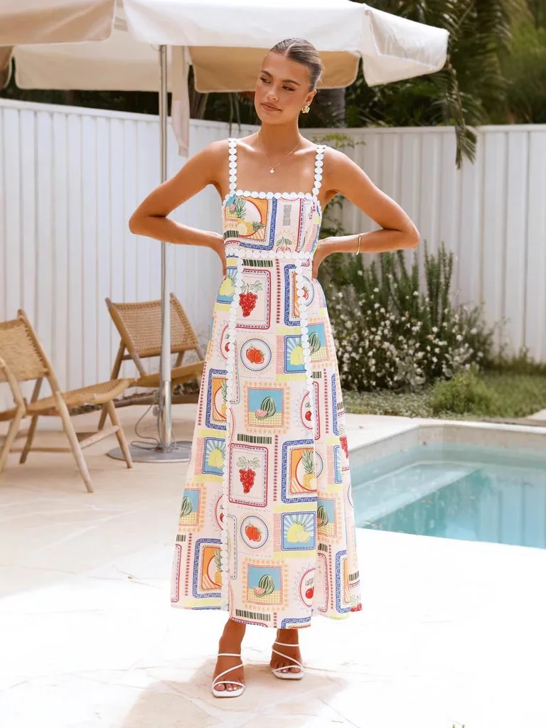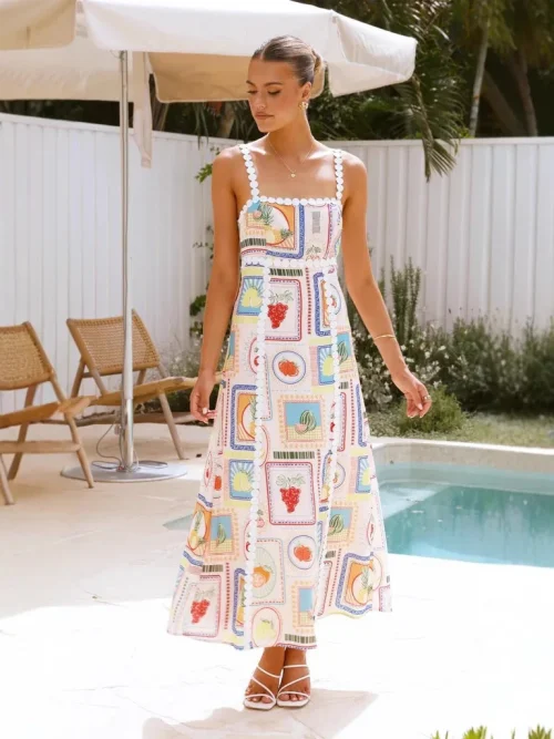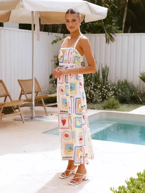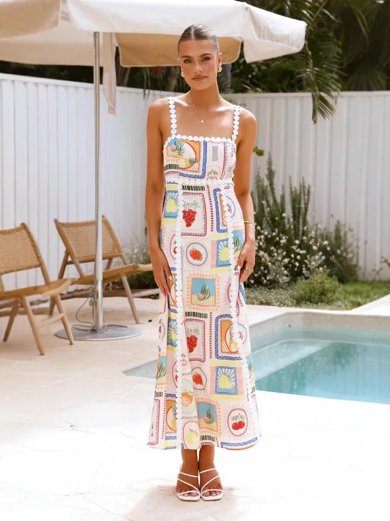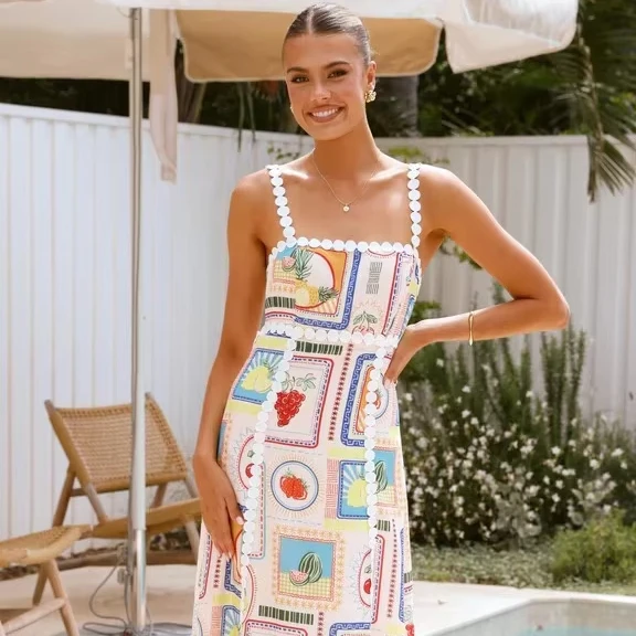 Product Name: 2025 Vintage Print Maxi Dress for Women Casual Sexy Empire Waistline Strapless Breathable Sleeveless for Summer Spring Holidays