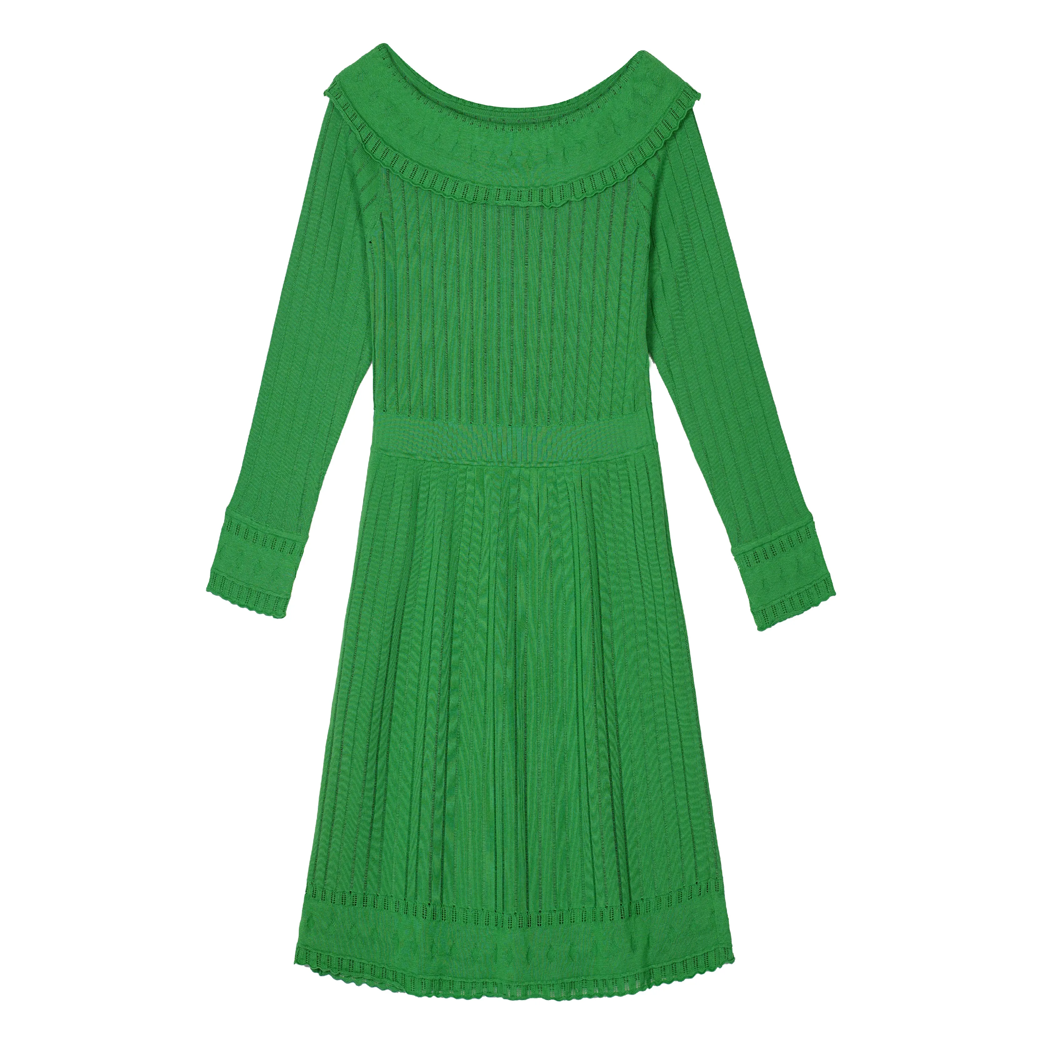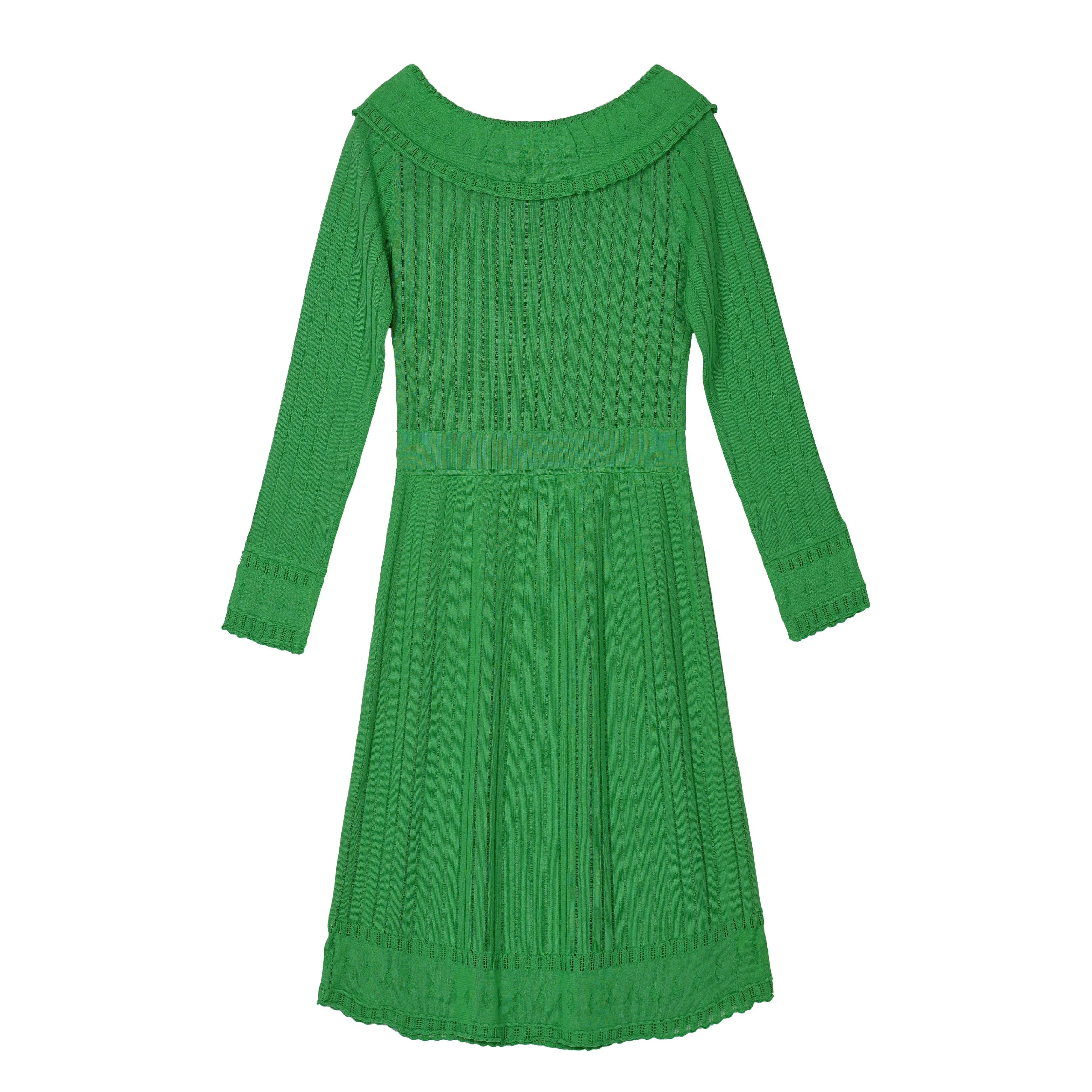 Product Name: 2025 Women’s Spring Autumn High Quality 100% Cotton Computer Knitted Pleat Long Sweater Dress