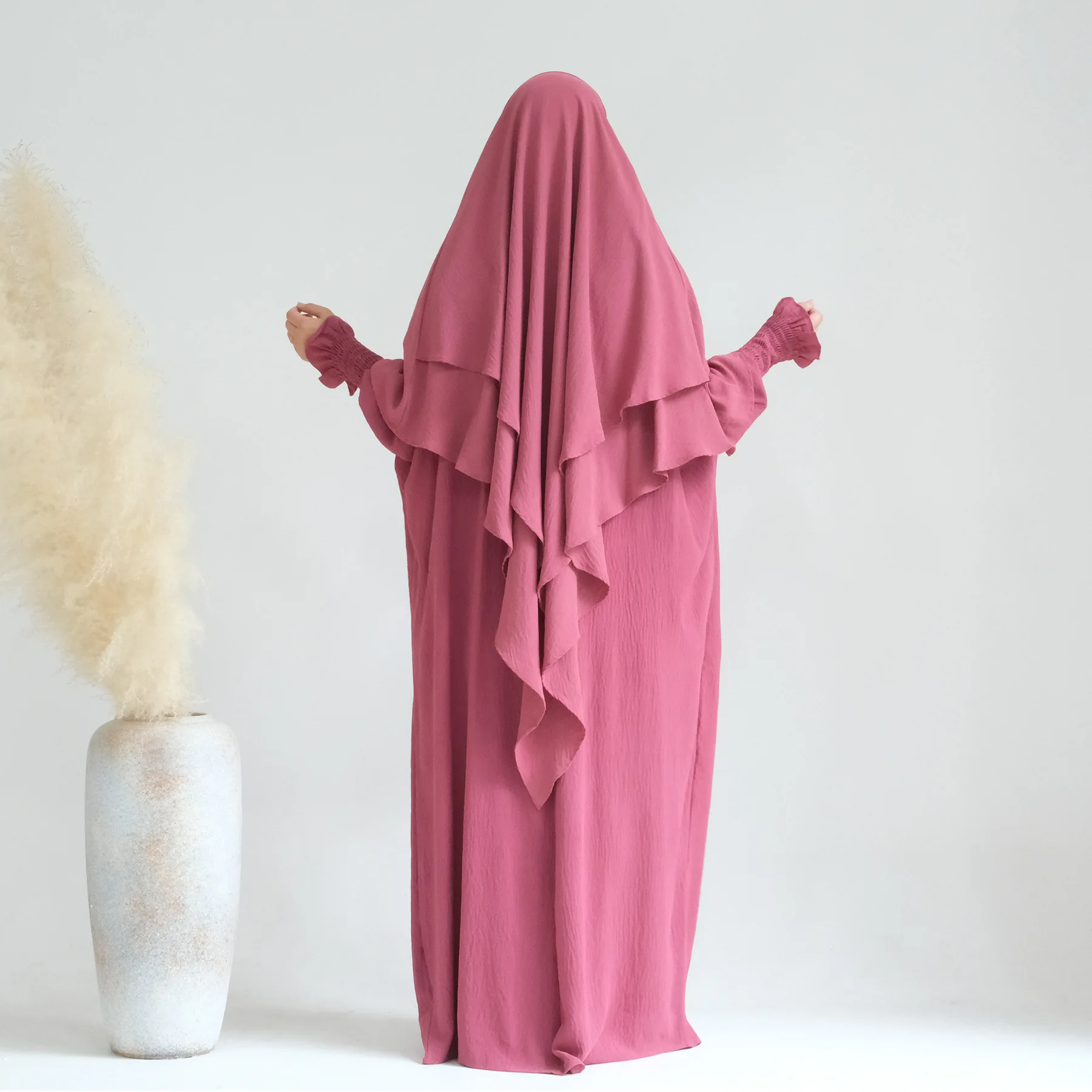 281 Two Layer 16 Colors Khimar Jilbab Set 2 Pieces Remandan Prayer Dress for Women Abaya Khimar Jilbab Set