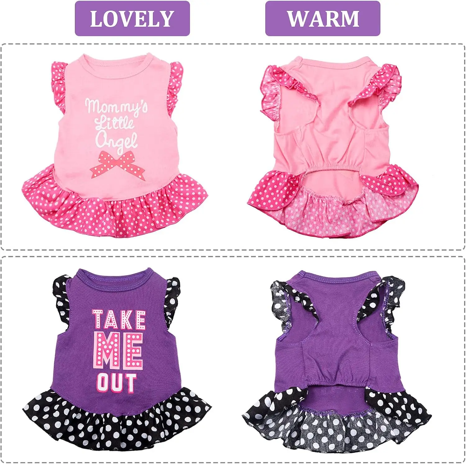 4 Pieces Cute Dog Sundress Printed Princess Puppy Summer Apparel Clothes with Ruffles XS Size for Small Cats and Puppies