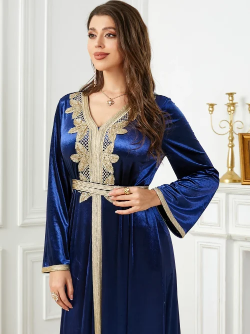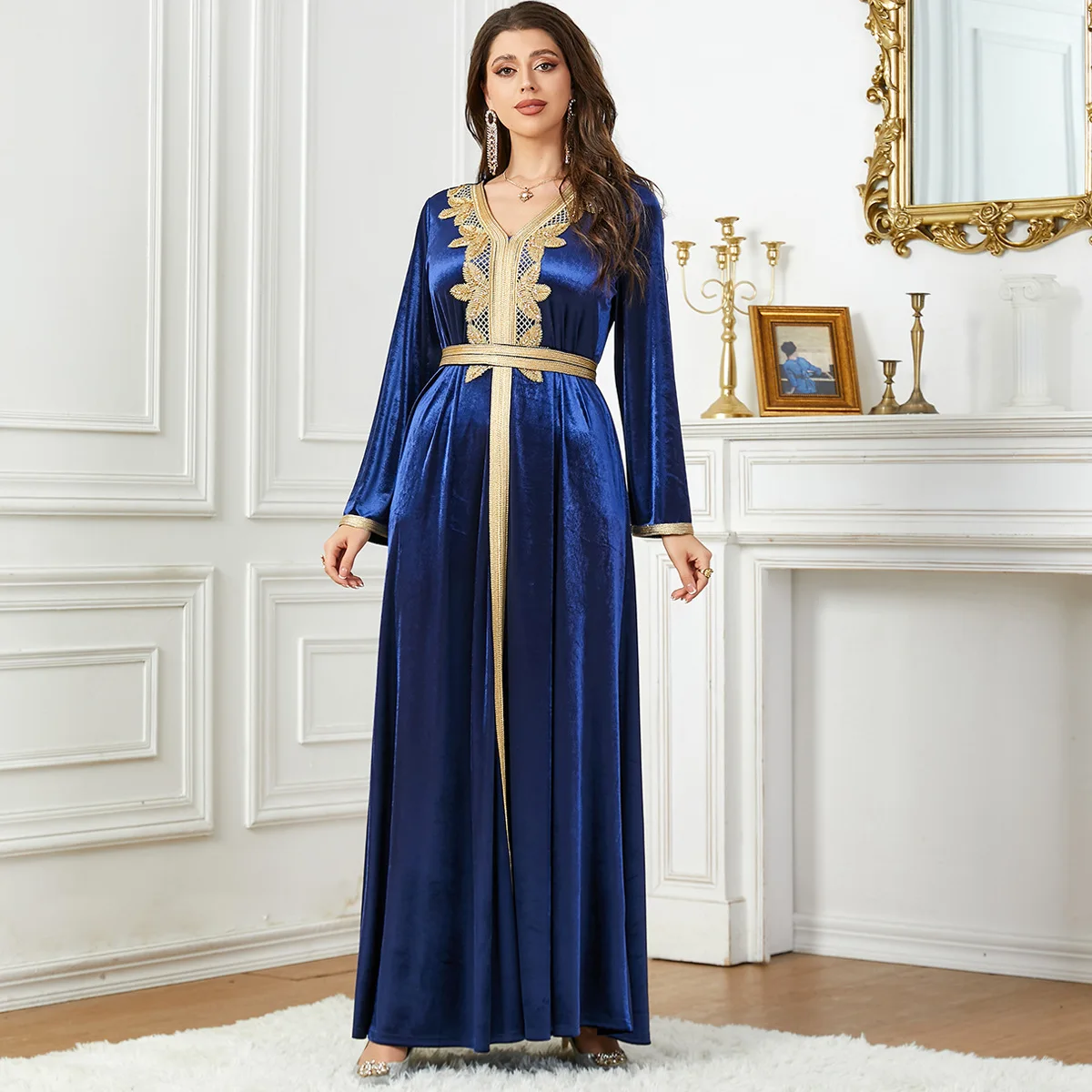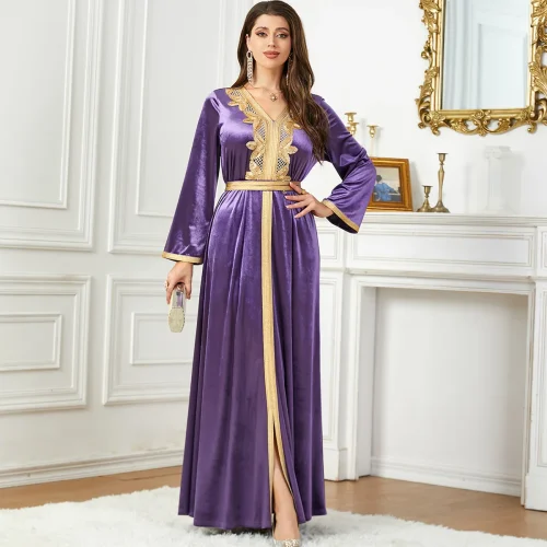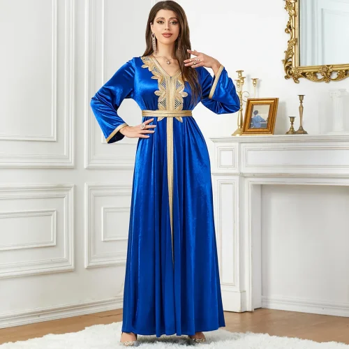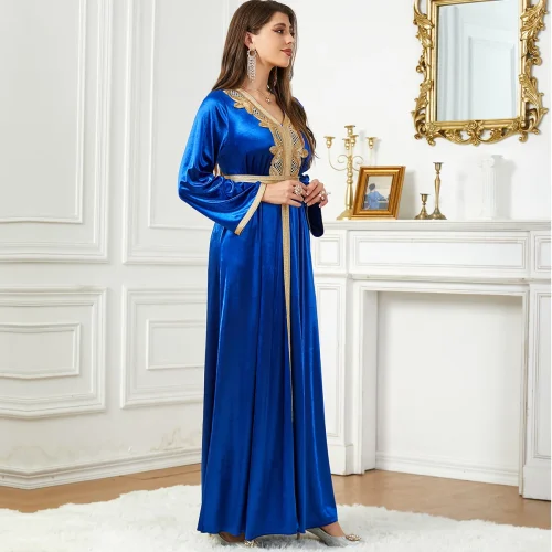 Product Name: 459 Velvet Abaya Muslim Clothing Turkey Solid Islamic Long Wearing Belt Closed Dress Women Dubai Abaya