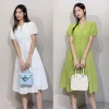Product Name: 5863-R- Dress Women Casual Dresses Lotus Sleeve Polka Dot Women Ladies Summer