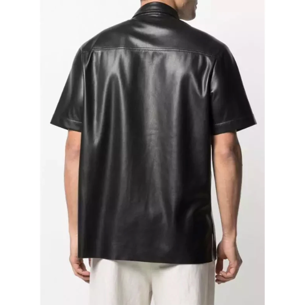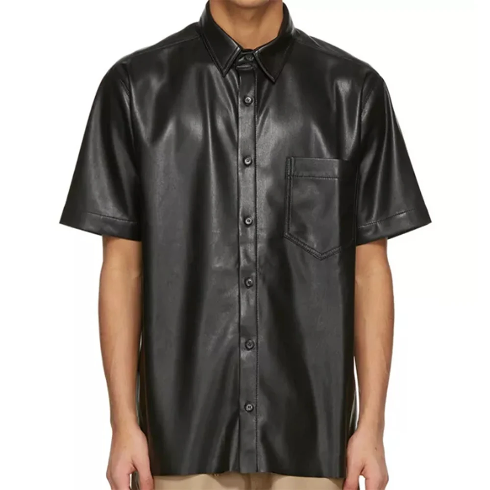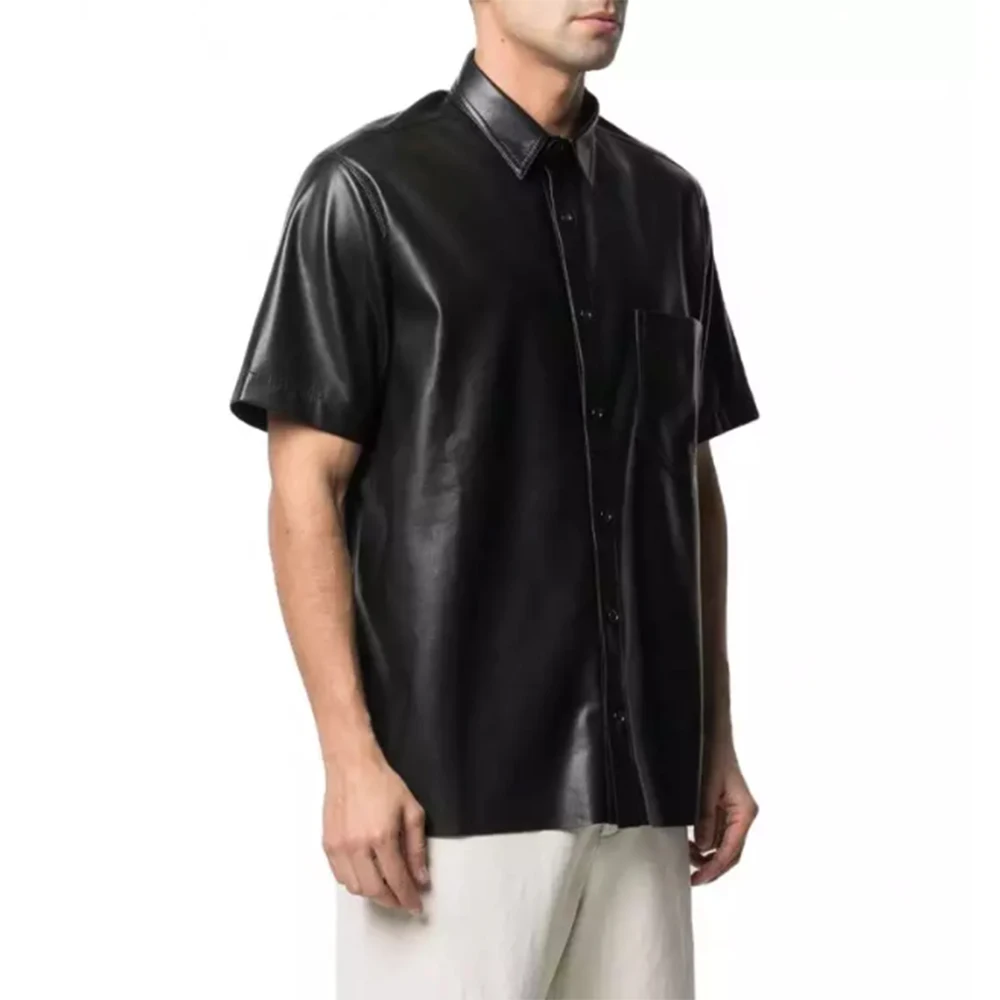 Product Name: 9834-T- Quality Short Sleeve Leather Shirt for Men Black Leather Shirts Leather Button up Shirt for Men