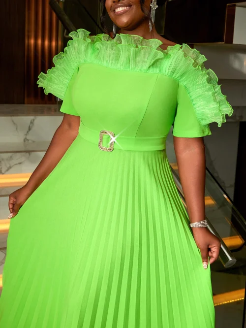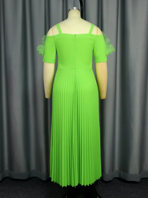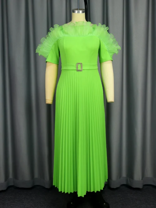 A Line Strap Short Sleeve Mesh Sundress Ruffle Casual Pleated Summer Dresses
