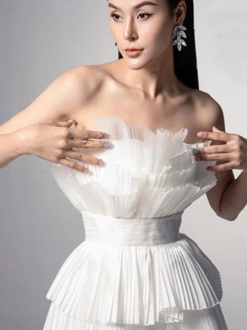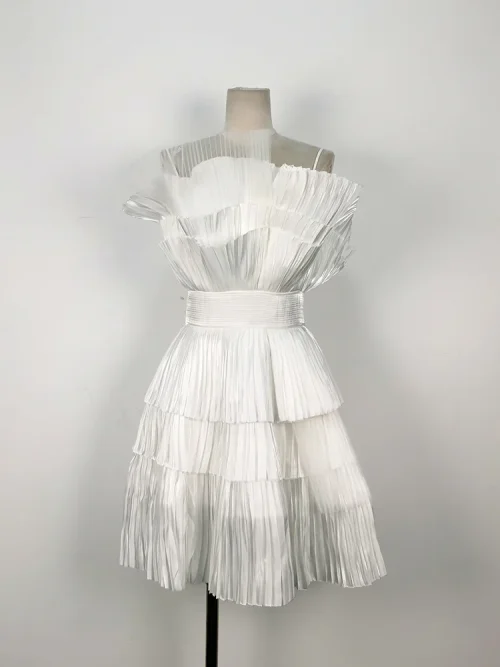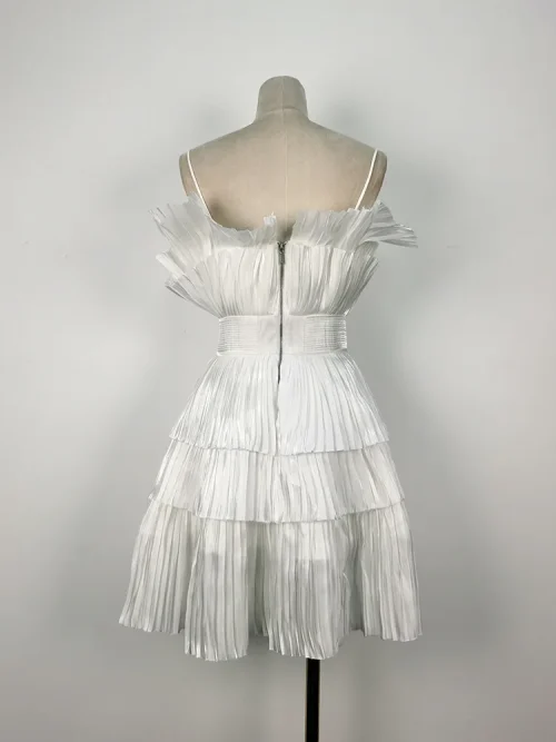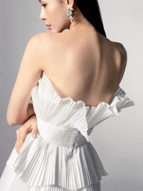 Product Name: A Line Three-dimensional Pleated Fan-shaped Mesh Puff Evening Party Dress with Ruffle