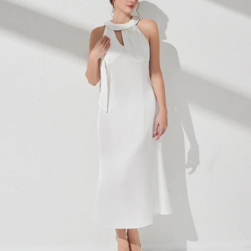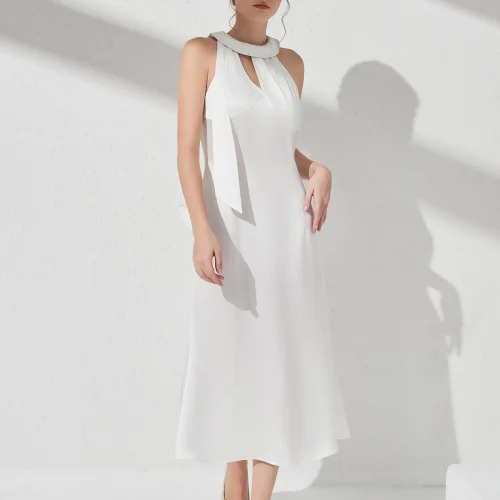 Acetate Whole Clothing Manufacture Women Clothing Manufacturer Apparel Supplierc Creating Luxury Women White Dress