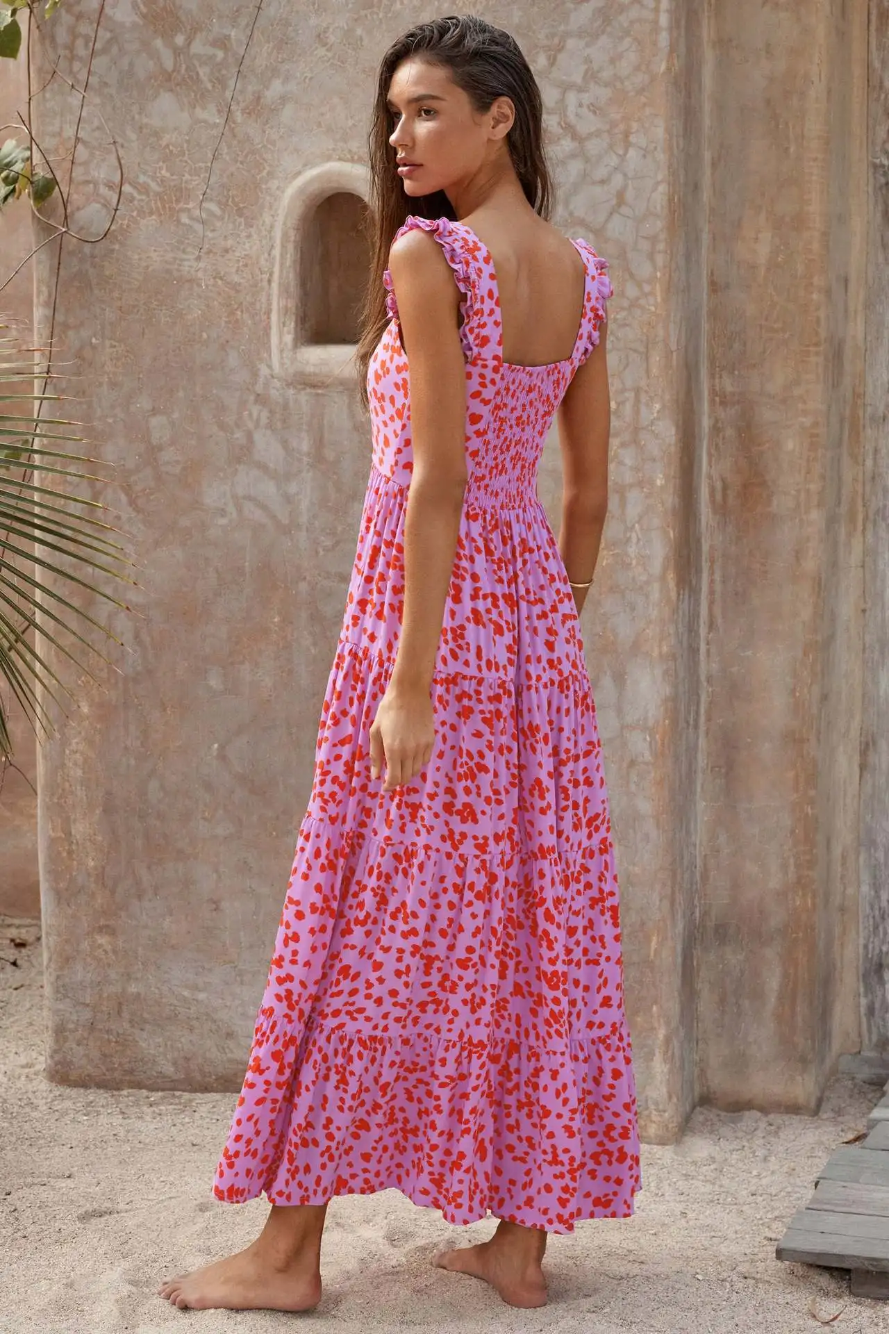AD665-Women Vocation Sundress Floral Print Maxi Dress Square Collar Women Bohemian Dress
