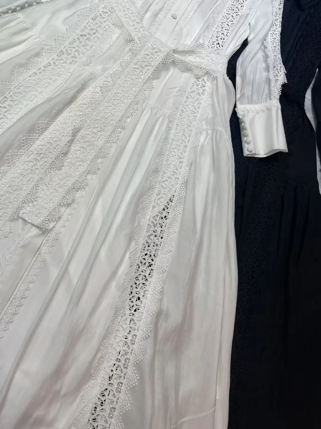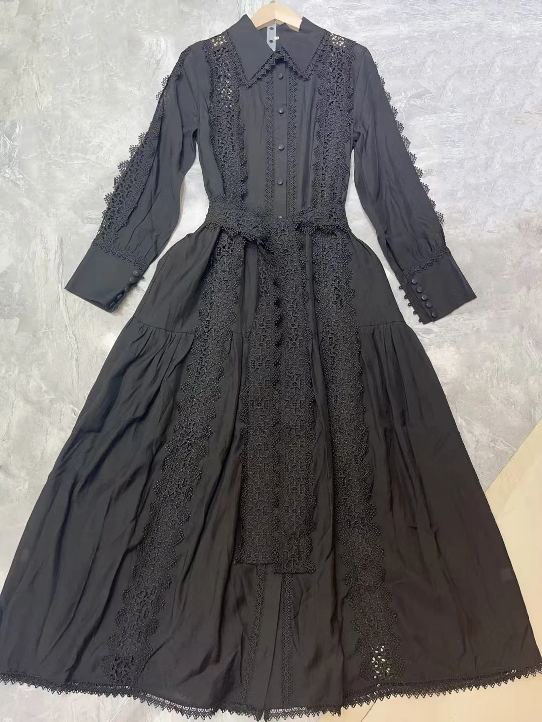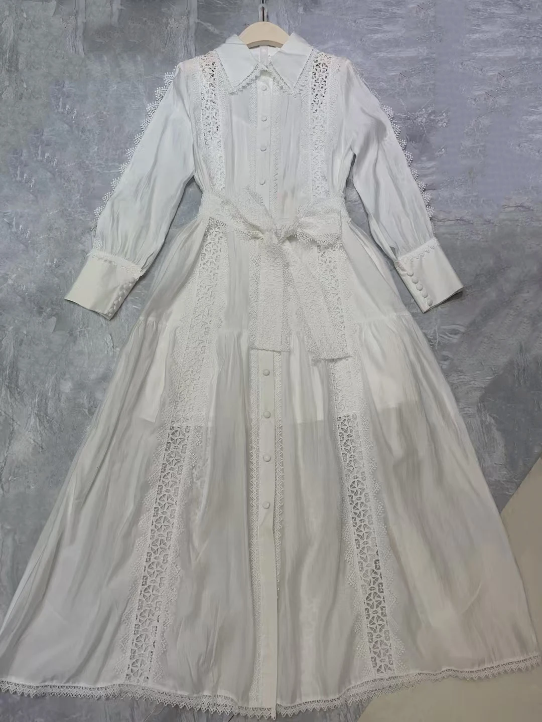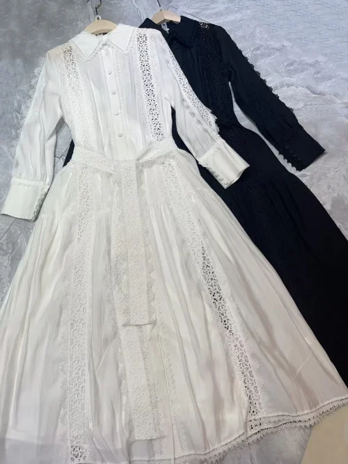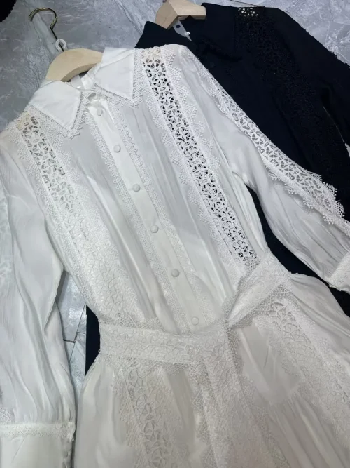 Product Name: AELESEEN 2025 Spring Summer Shirt Dress Women Turn-down Collar Solid White Black Hollow Out Belt Split Casual Office Ladies