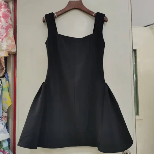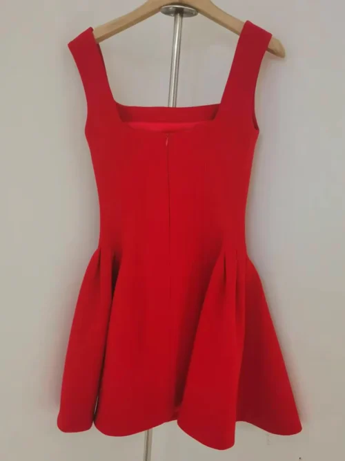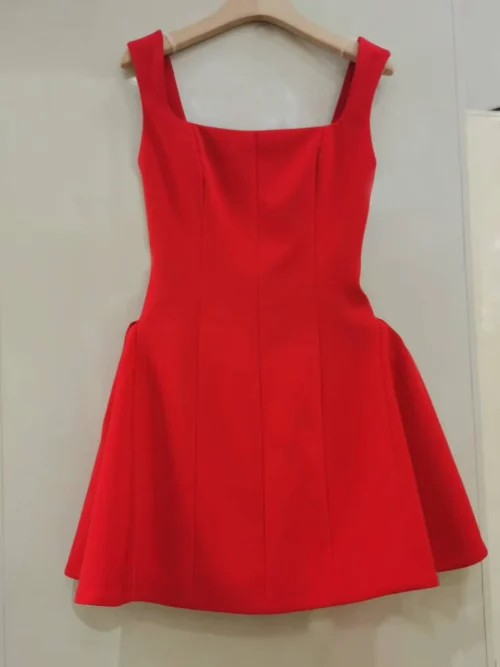 AELESEEN 2025 Women’s Retro Tube Dress Spring Summer Spaghetti Strap Square Collar Casual Soli Red Black Ruffles Holiday