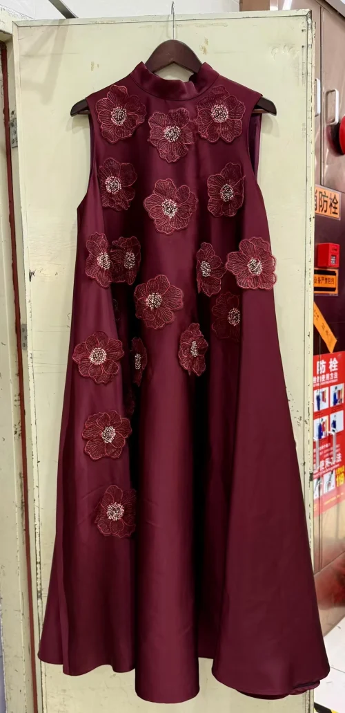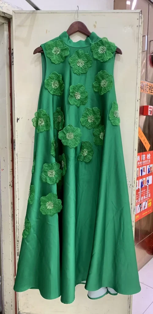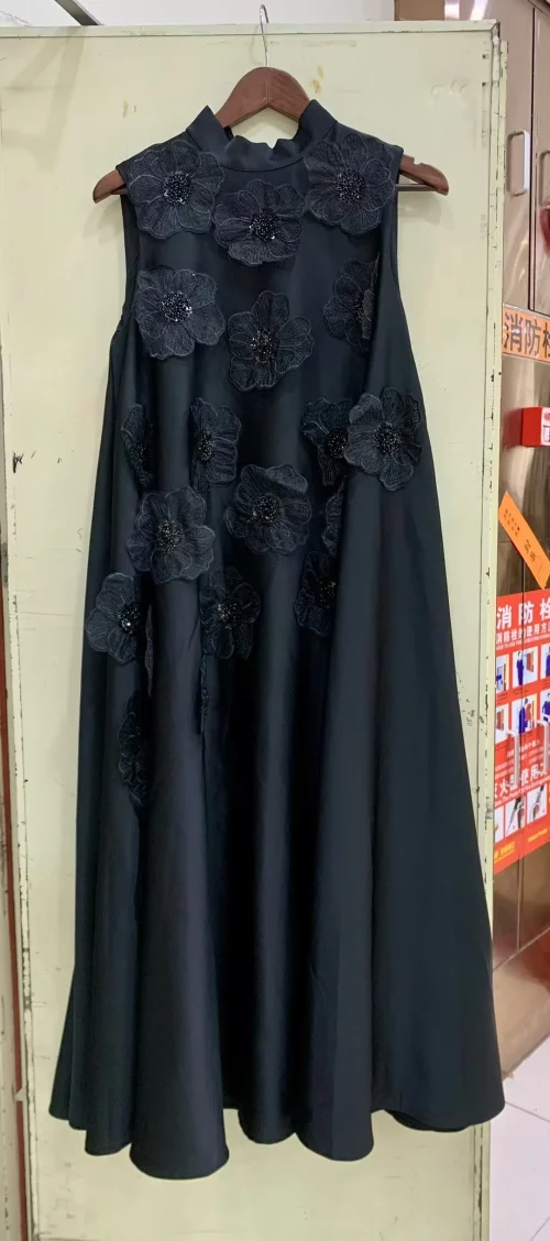Product Name: AELESEEN Women Casual Midi Dress Runway Fashion Stand Collar 3D Appliques Flower Beading Sleeveless Loose Bow Holiday Vacation