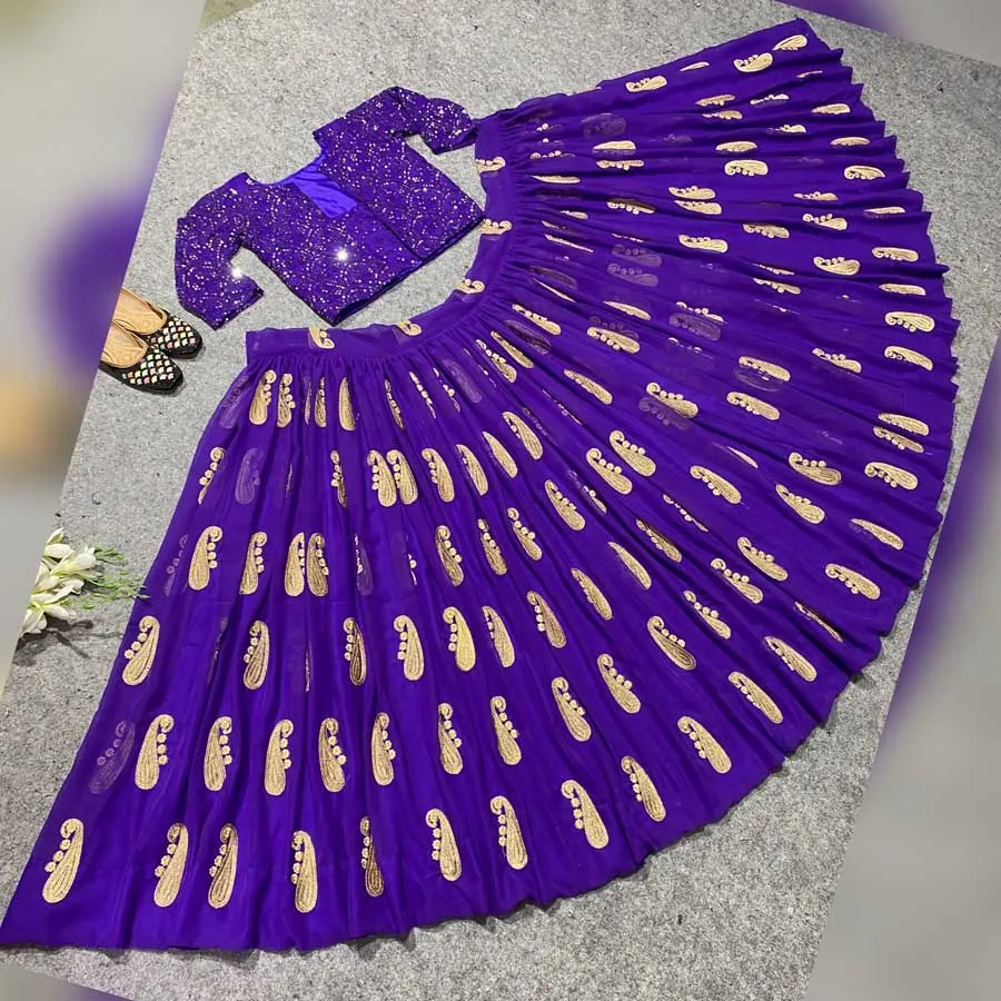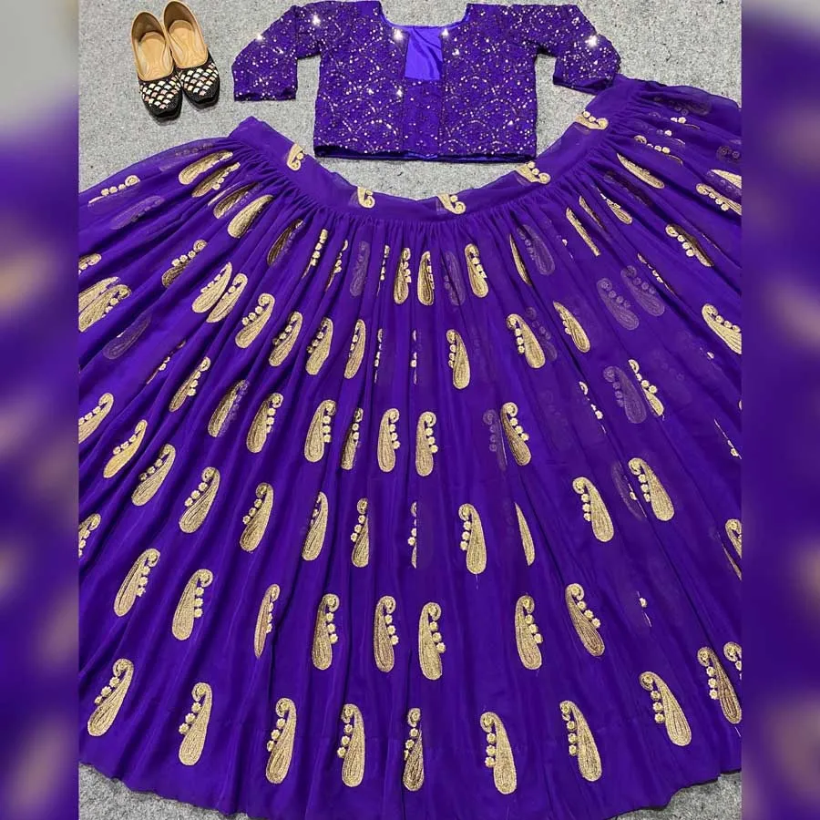 ATTRACTIVE GEORGETTE EMBROIDERY WORK READY to WEAR LEHENGA CHOLI PURPLE