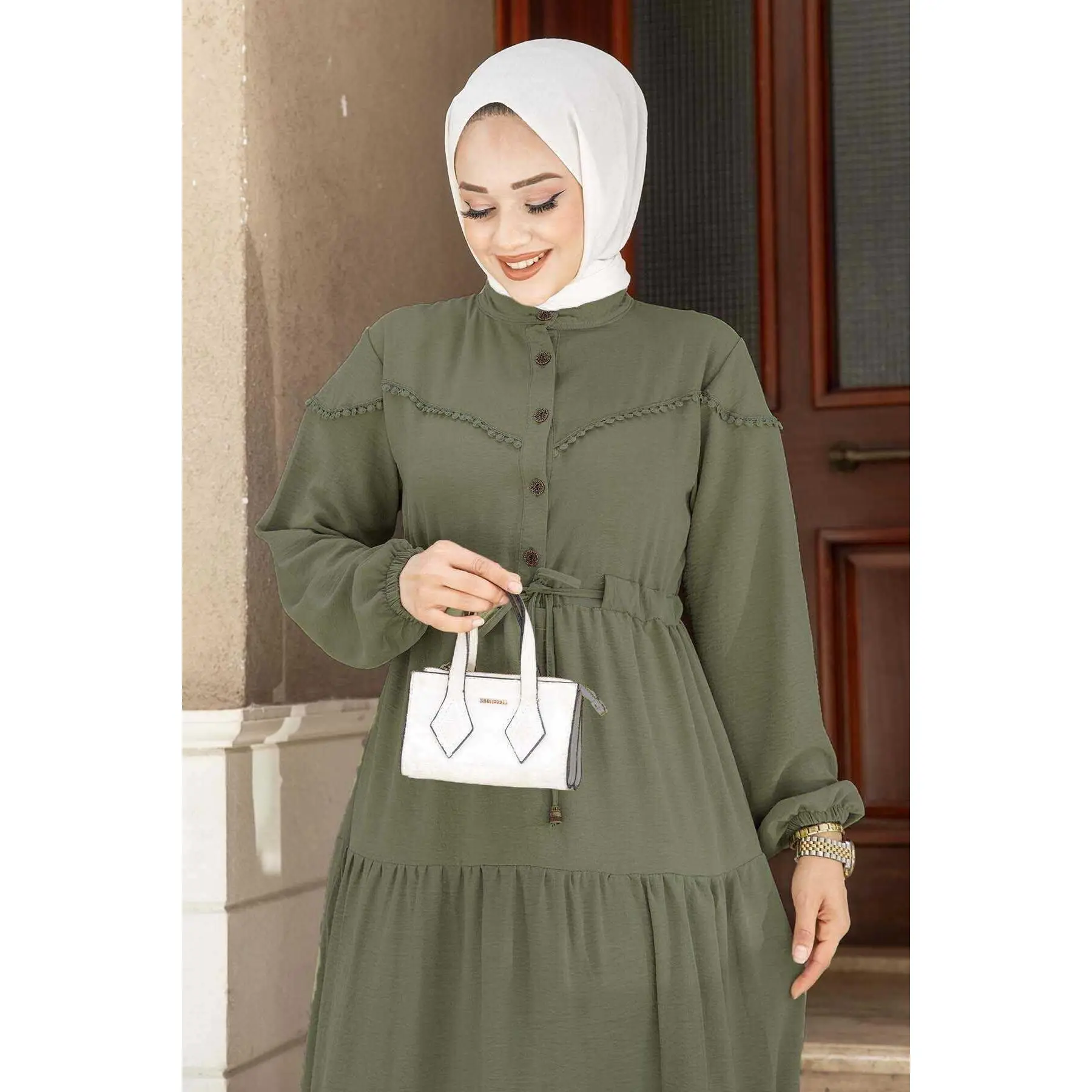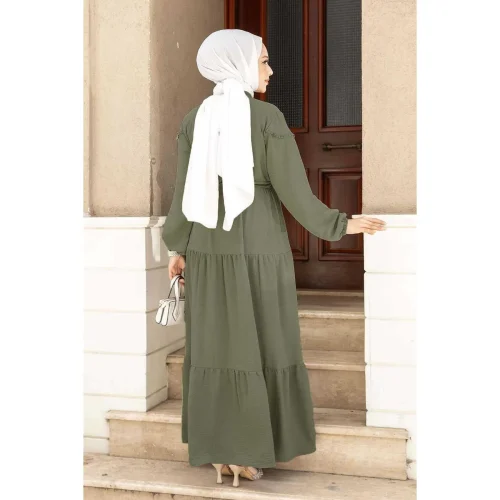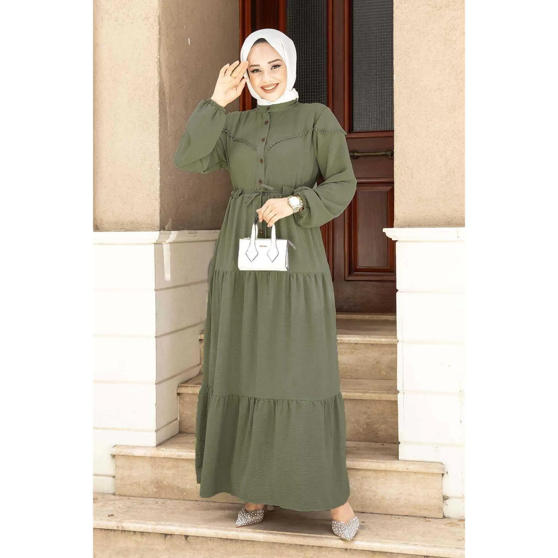 Product Name: Autumn Winter Elegant Puff Sleeve Khaki Dress Ruffles Navy Blue Lining ODM Formal Party Vacation Day Tunnel Belted Size XS Order