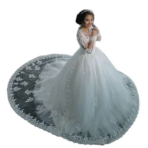 Product Name: Ball Gown Big Train New Wedding Bride Senior Retro Sexy Tulle V-neck Long Sleeve Wedding Dress