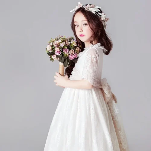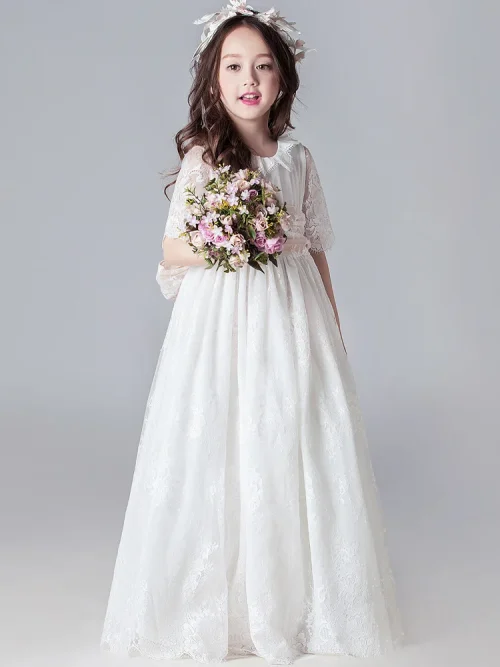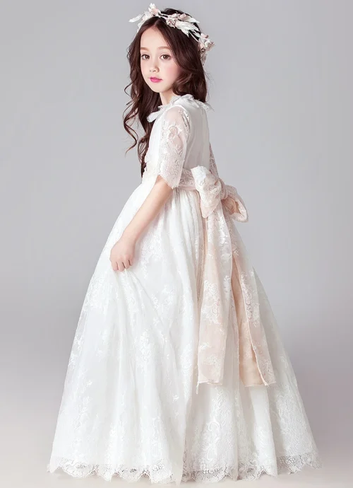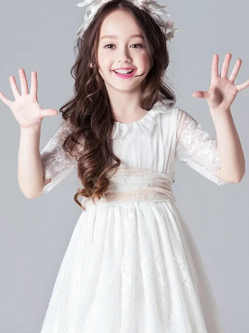 Ball Gown for Kids Lace Sleeve Elegant Dresses 10 Year Old Girl Dresses for Party Ready to Ship