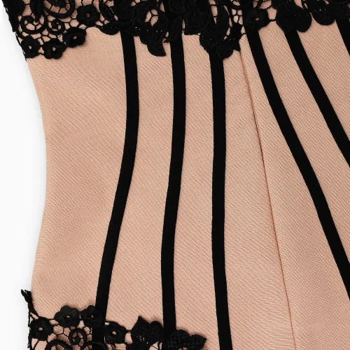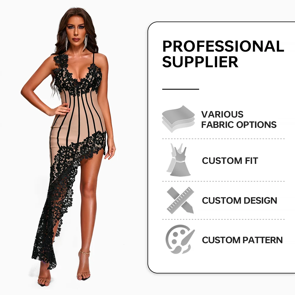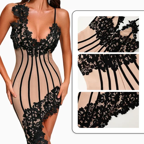 Product Name: Bella Barnett High Quality Women Sexy Deep V Neck Lace Striped Midi Party Bandage Dress Cocktail Bodycon