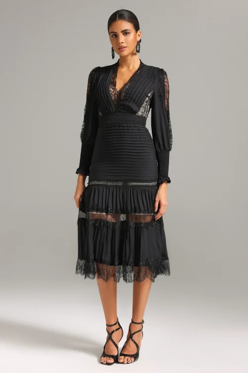 Bella Barnett LadiesPetra V Neck Lace Midi Dress Ladies Vestidos Women Elegant Summer Casual Dresses