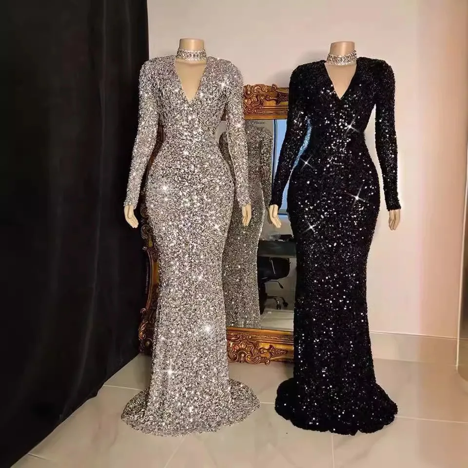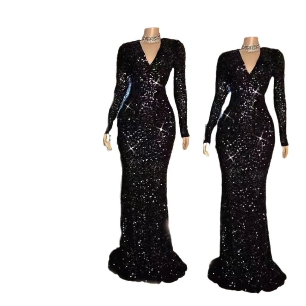 Product Name: Best Black Gold Satin Evening Dress Elegant Mermaid Style Champagne Sequin Ball Gown Women Long Formal Party
