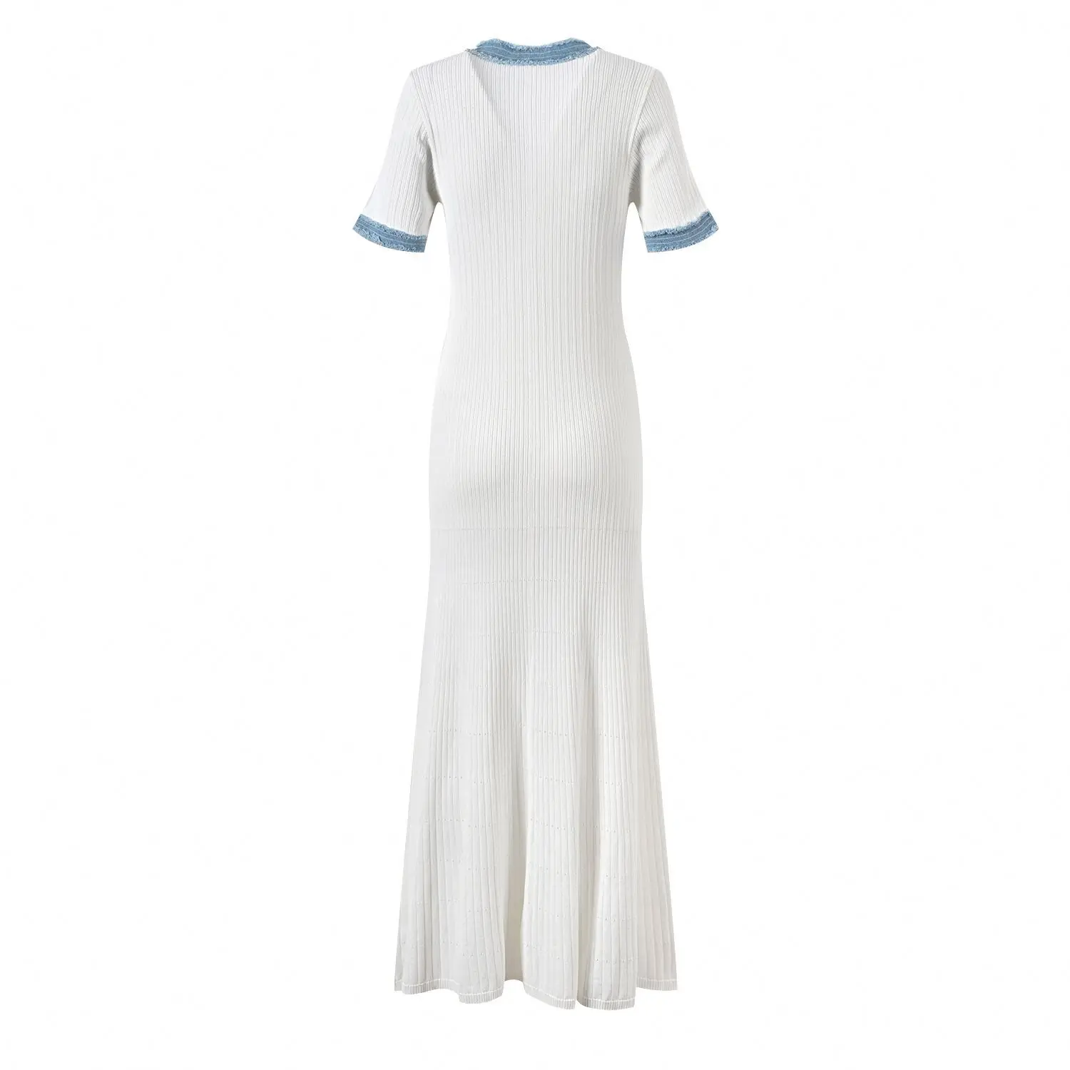 Bettergirl 2024 Spring Summer Ladies Fashion Elegant Single-Breasted Maxi Dress O-Neckline Short Sleeve Bodycon Natural Button