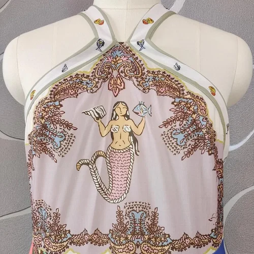 Product Name: Bohemian Vacation Style 2025 Spring Sexy Halter Neck Backless Tied Flower Print Sicilian Dress