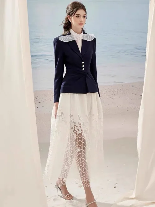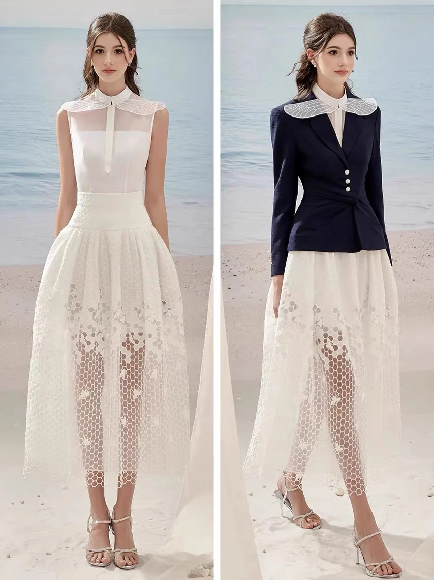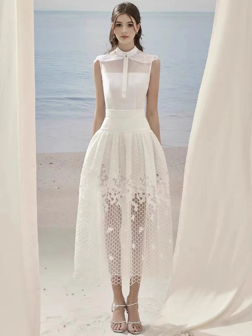 Boutique Women’s 2-Piece Elegant Evening Dress New Round Neck Fashionable Embroidered Mesh