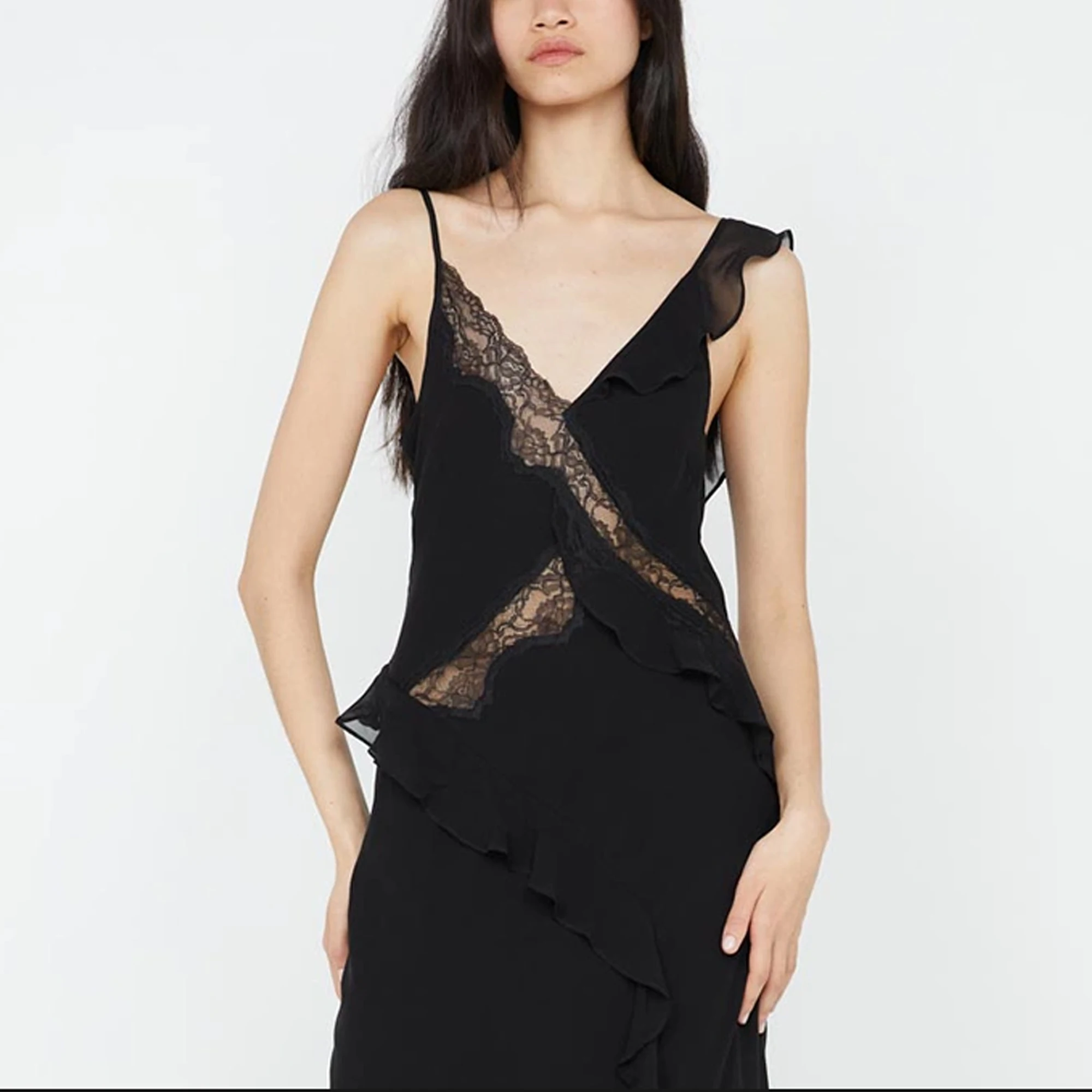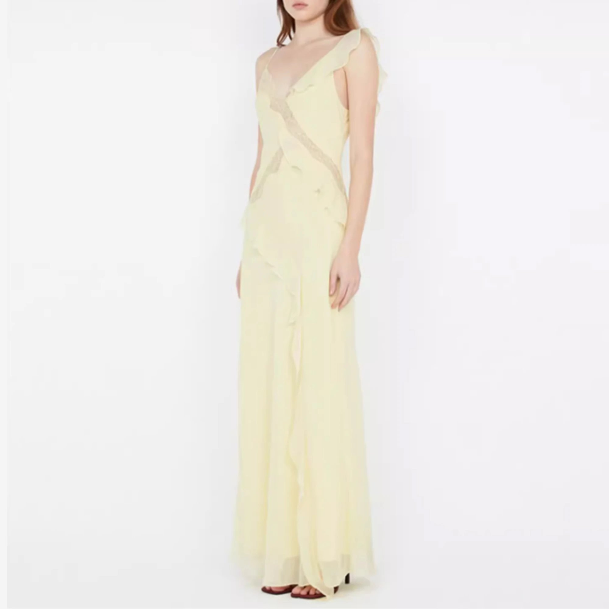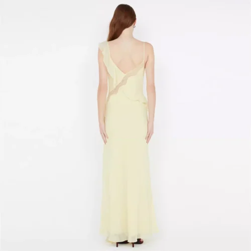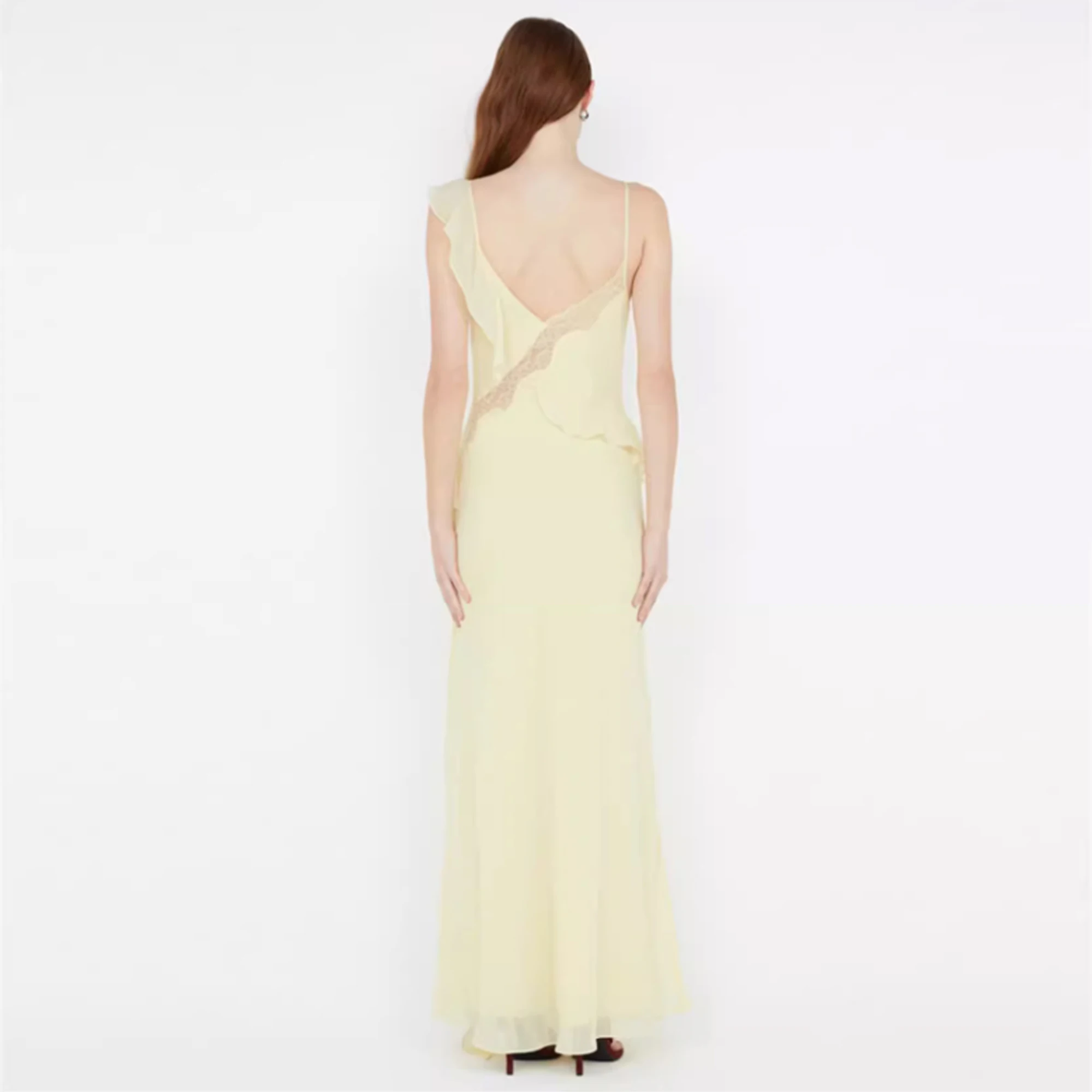 Brand ization Asymmetric Straps Women’s Elegant Boho Chic Ruffle V-Neck Maxi Sundress New Fashion Party Casual Lace Dress