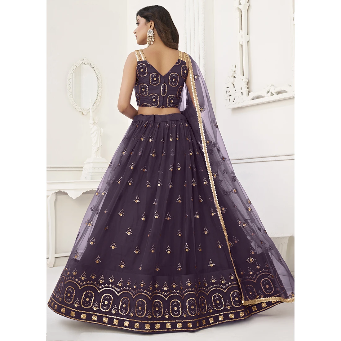 Product Name: Butterfly Net Lehenga Choli Embroidered Wine Pearl High-Collar Short-Sleeve Straight Party Wear Evening Dress for Ladies 4XL