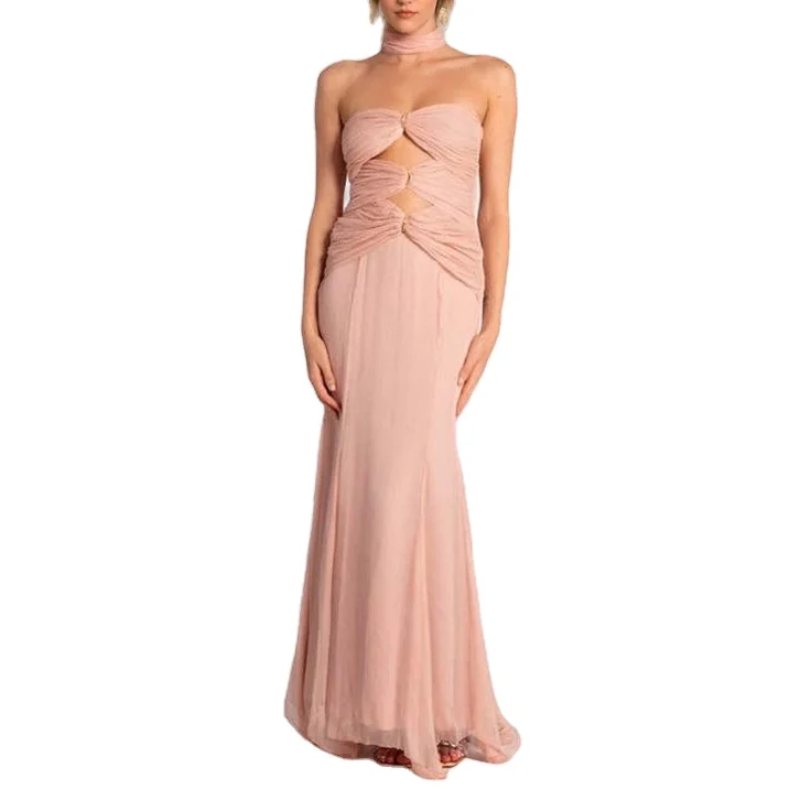 Product Name: C Clothing Women Long Wedding Party Elegant Evening Cocktail Dress Birthday Party Mesh Hollow Dress
