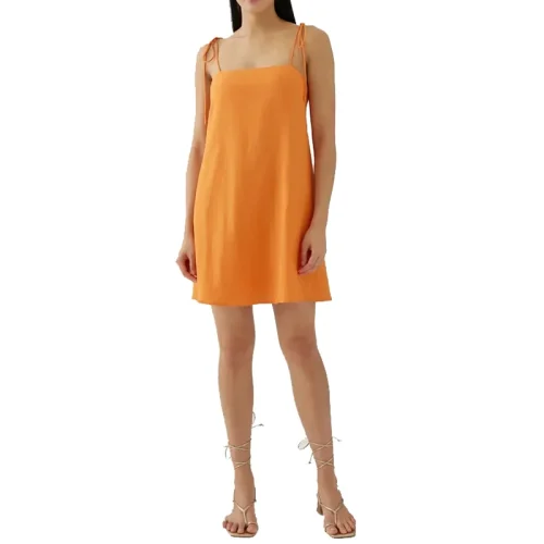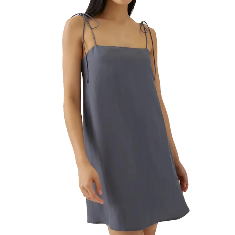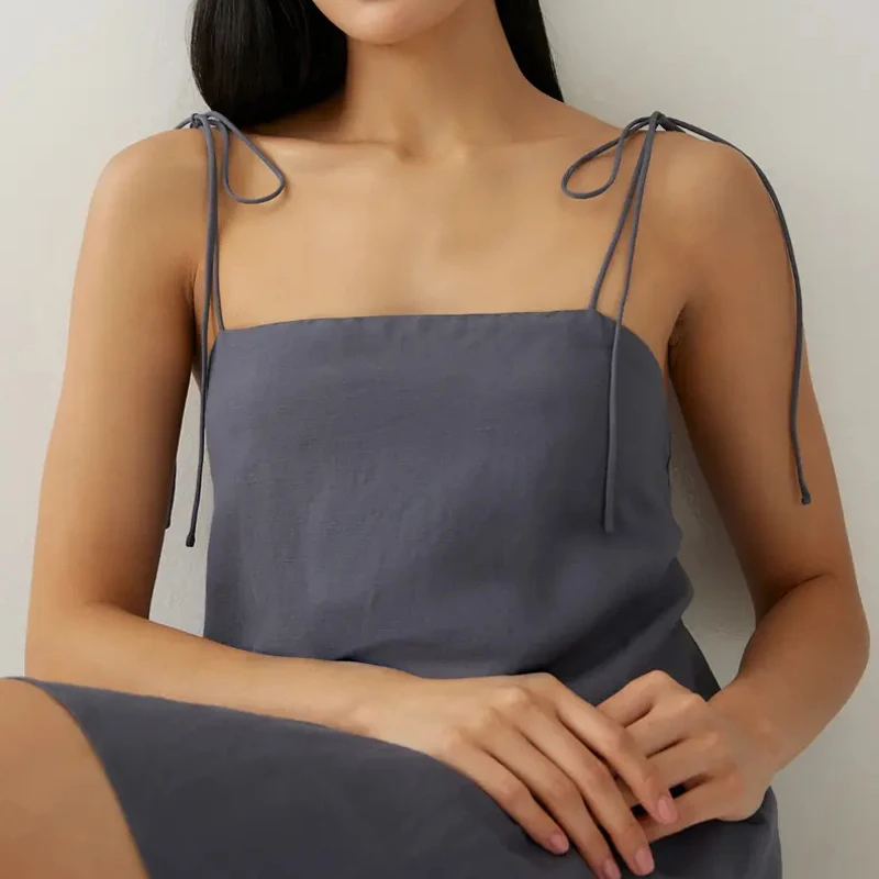 Product Name: Casual 100% Cotton Padded Linen Tie Shoulder Dress Women’s Summer Linen Sundress Plain A-Line Dress
