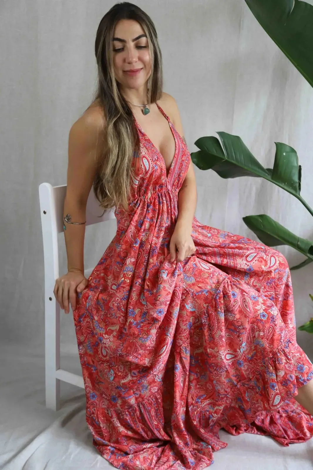 Product Name: Casual Beach Sundress Women’s Slip Dress Summer Holiday Style Sleeveless Sexy V-neck Strap Sling Floral Midi Dress Cotton Linen