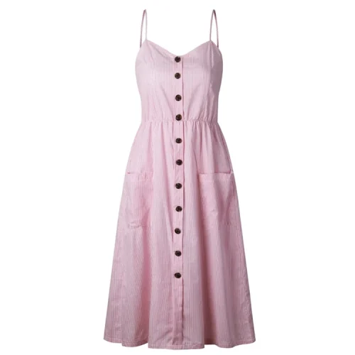 Product Name: Casual Vintage Sundress Women Summer Dress 2019 Midi Button Backless Beach Dress With Pocket Female