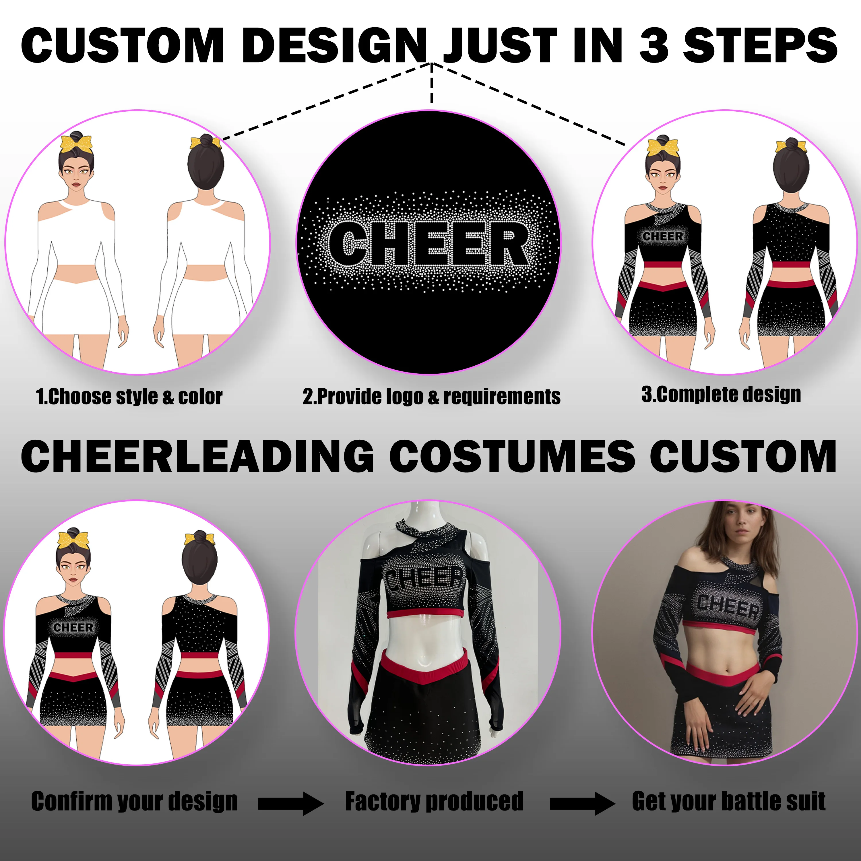 Technics: Automated cutting, Rhinestone, Applique, Sublimation, Embroidery