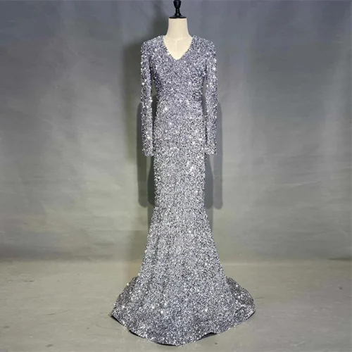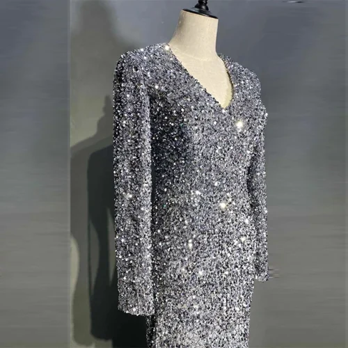 Product Name: Clothing Manufacturer Design Black and Gold Evening Dress Mermaid Champagne Sequin Ball Elegant Women Dress