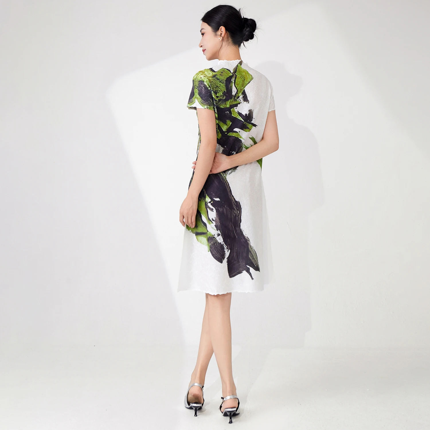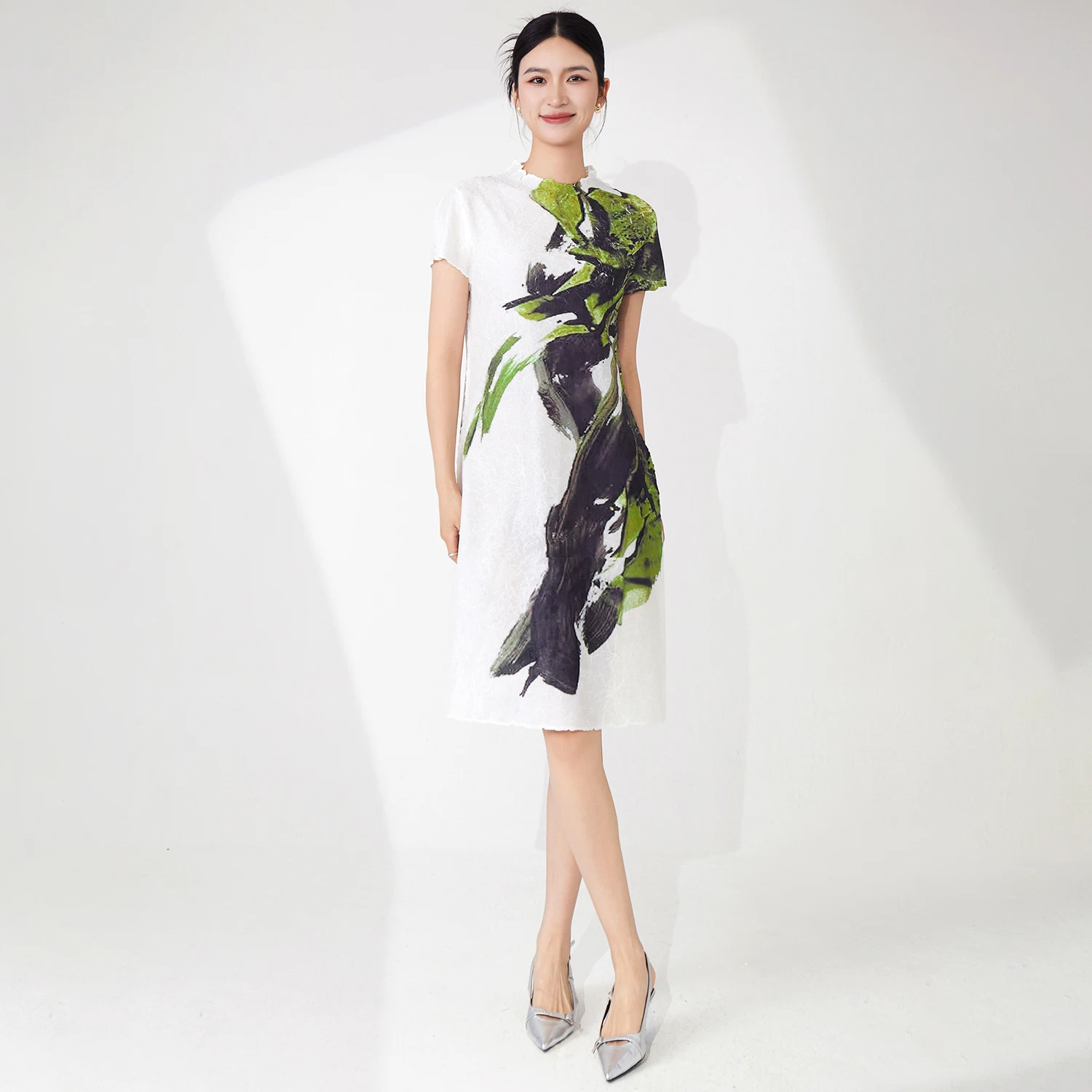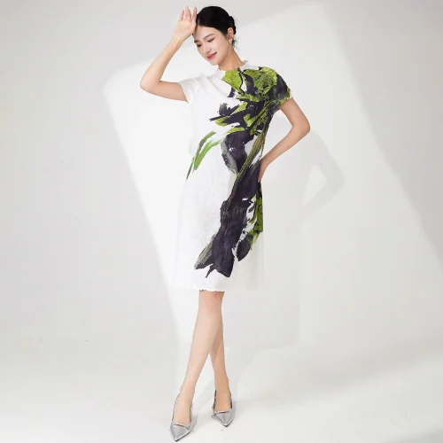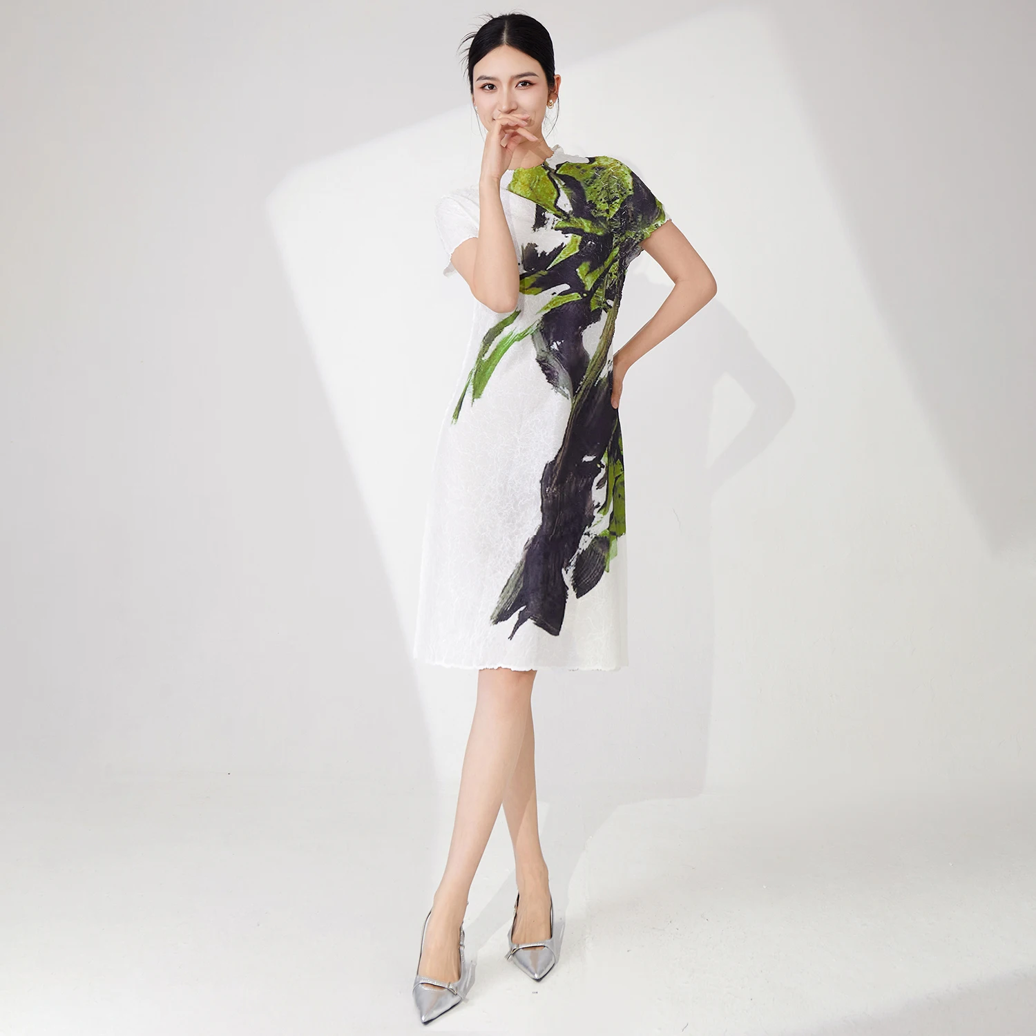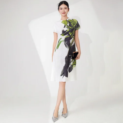 Clothing Women’s Fashion Dress Design Casual Polyester Fabric Dress Print Short Sleeve Dress