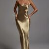 Colia Diamante Mesh Corset Satin Maxi Dress – Red