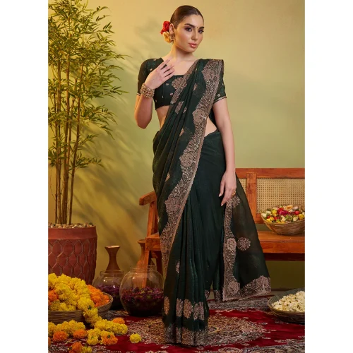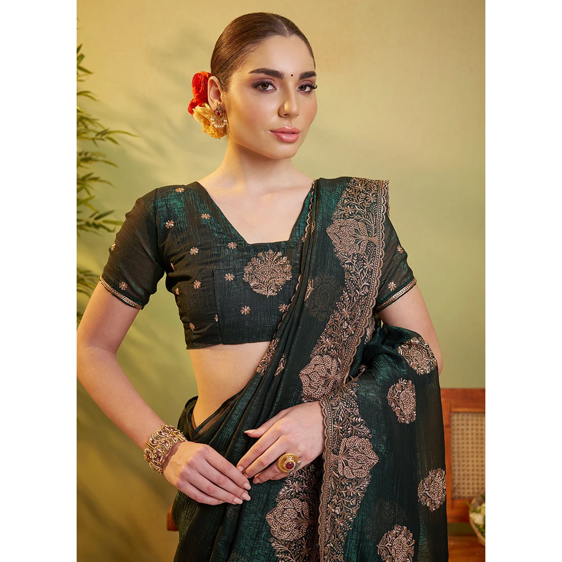 Crunchy Chiffon Saree with Peach Embroidery Party Wear Evening Dress