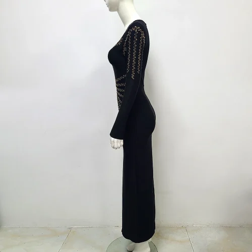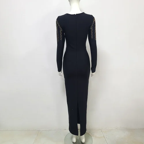 Product Name: Deep V Neck Black Sequin Sexy Maxi Dress Women Beading Long Dress