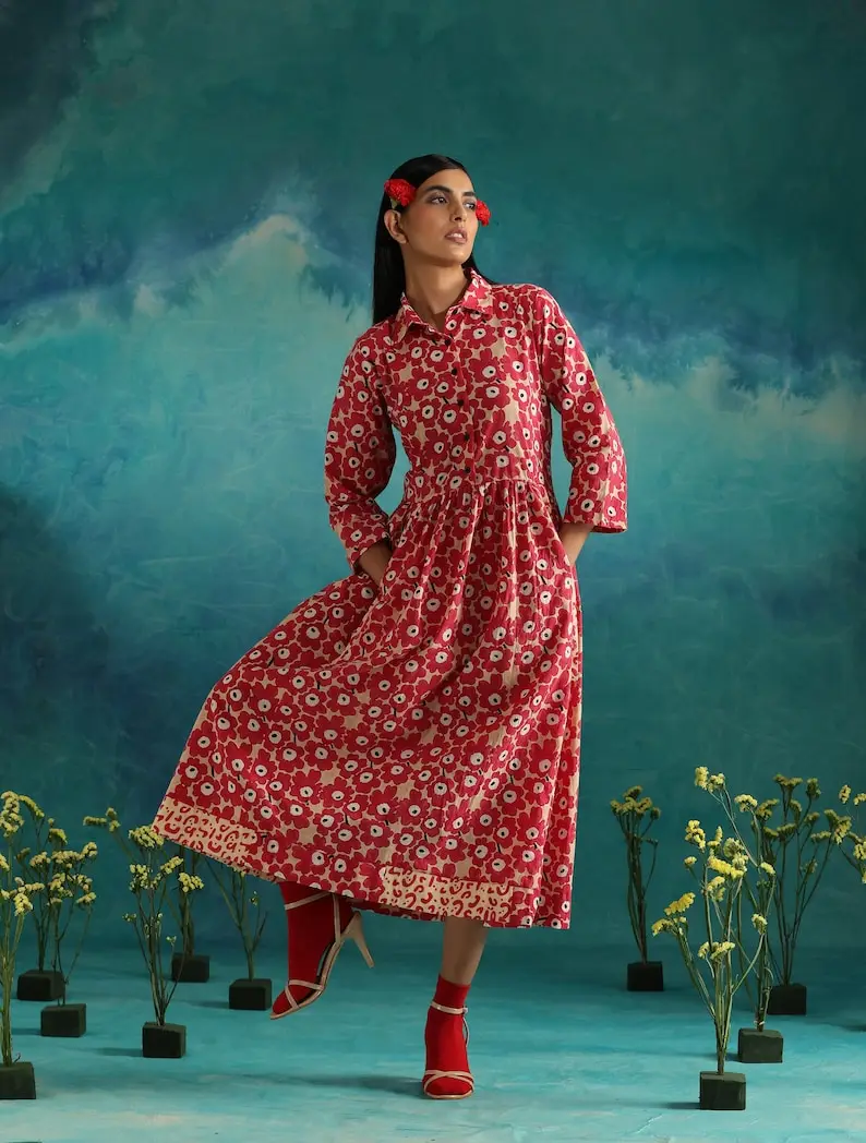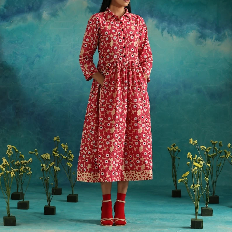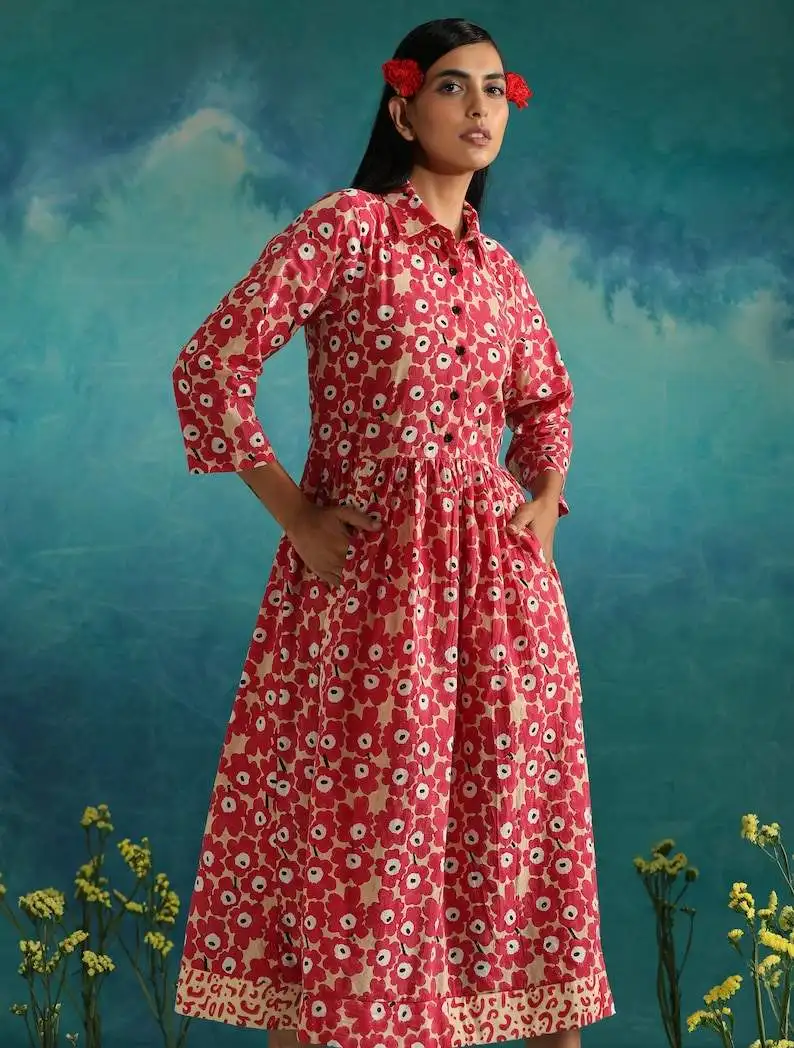 Product Name: Designer Casual Loose Dress for Women Block Printed Maxi Dress Short Sleeves Sweet for Wedding Festivals Bridesmaids’ Wearing