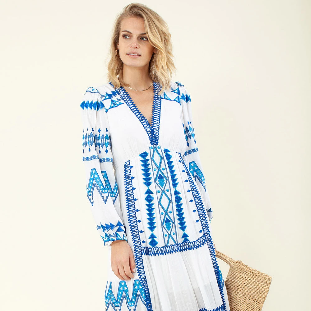 Product Name: Designer High Fashion Spring Dress for Women Long Sleeve V-Neck Vintage Boho Floor-Length Dress Sweet Style Natural Eco-Friendly