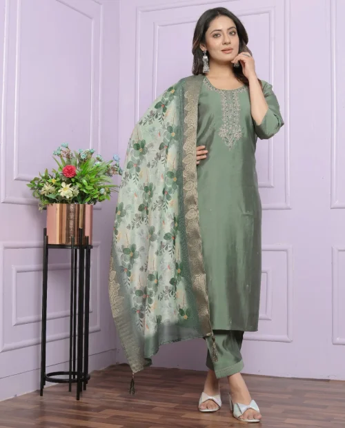 Product Name: Designer Silk Embroidery Sequence Work Salwar Suit Kameez Dupatta-Fashionable Pakistani Wedding Long Gown for Indian Pakistani