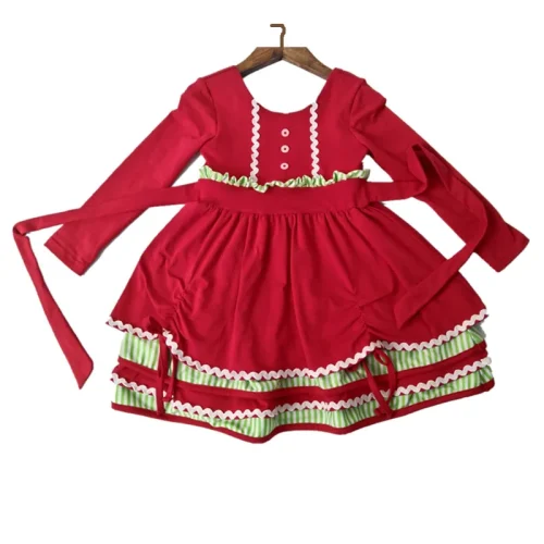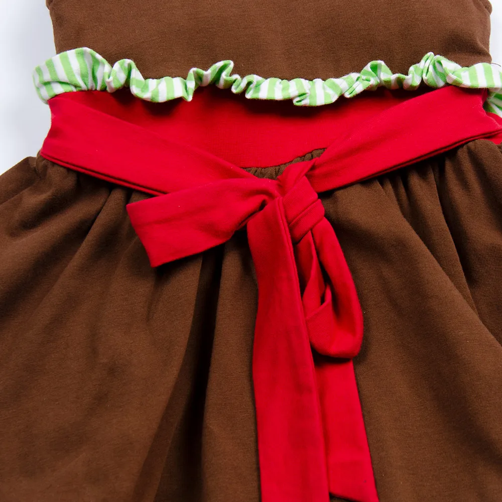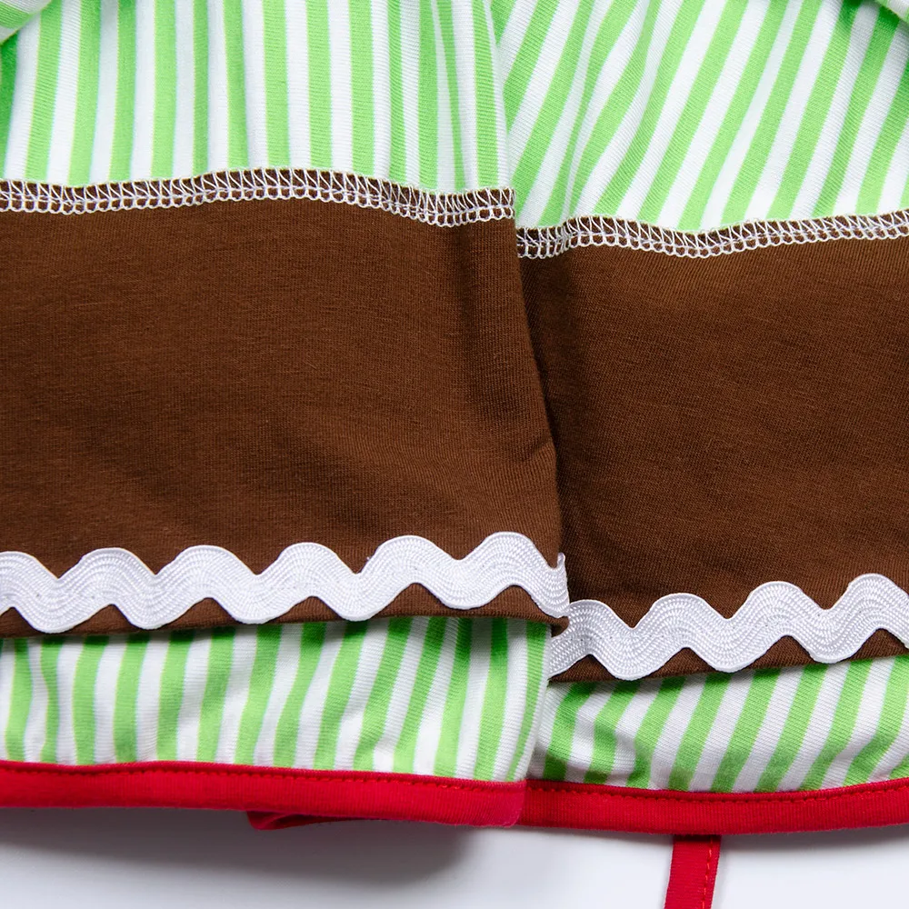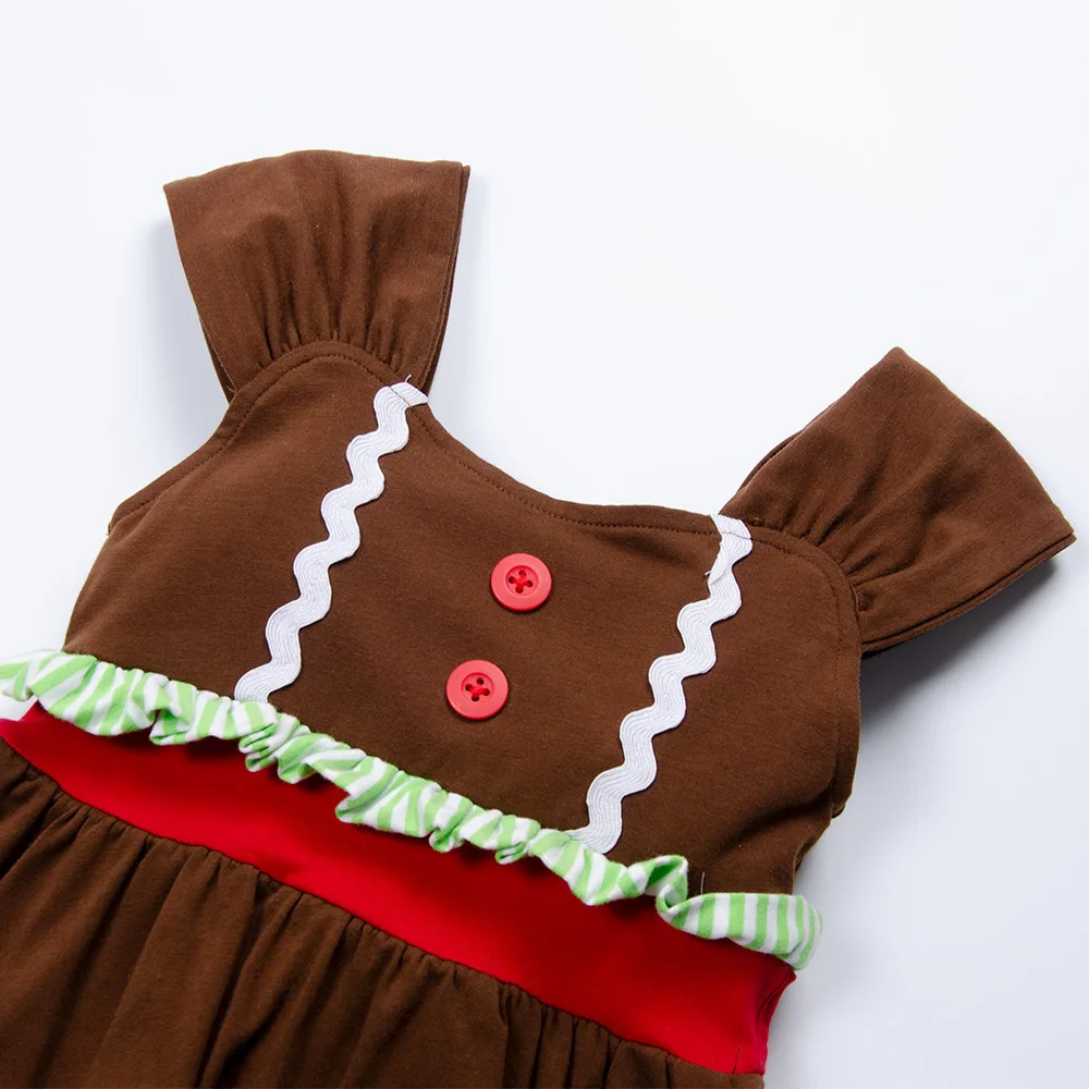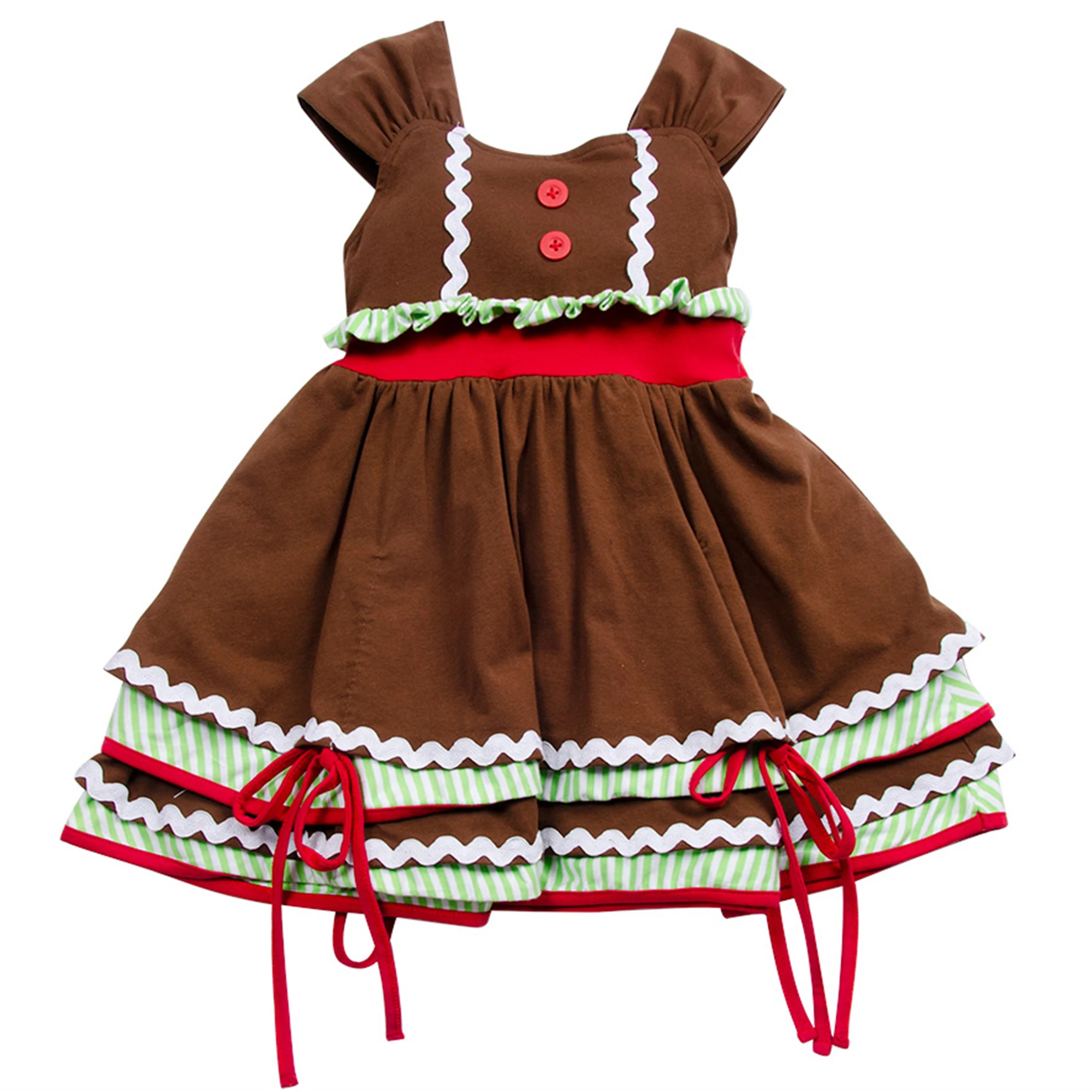Product Name: Direct Sale Designer Design Baby Girl Christmas Short Sleeve Red Brown Stripe Layers Dress Vestido With Lace