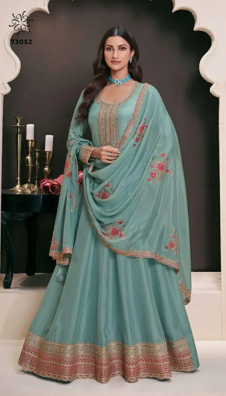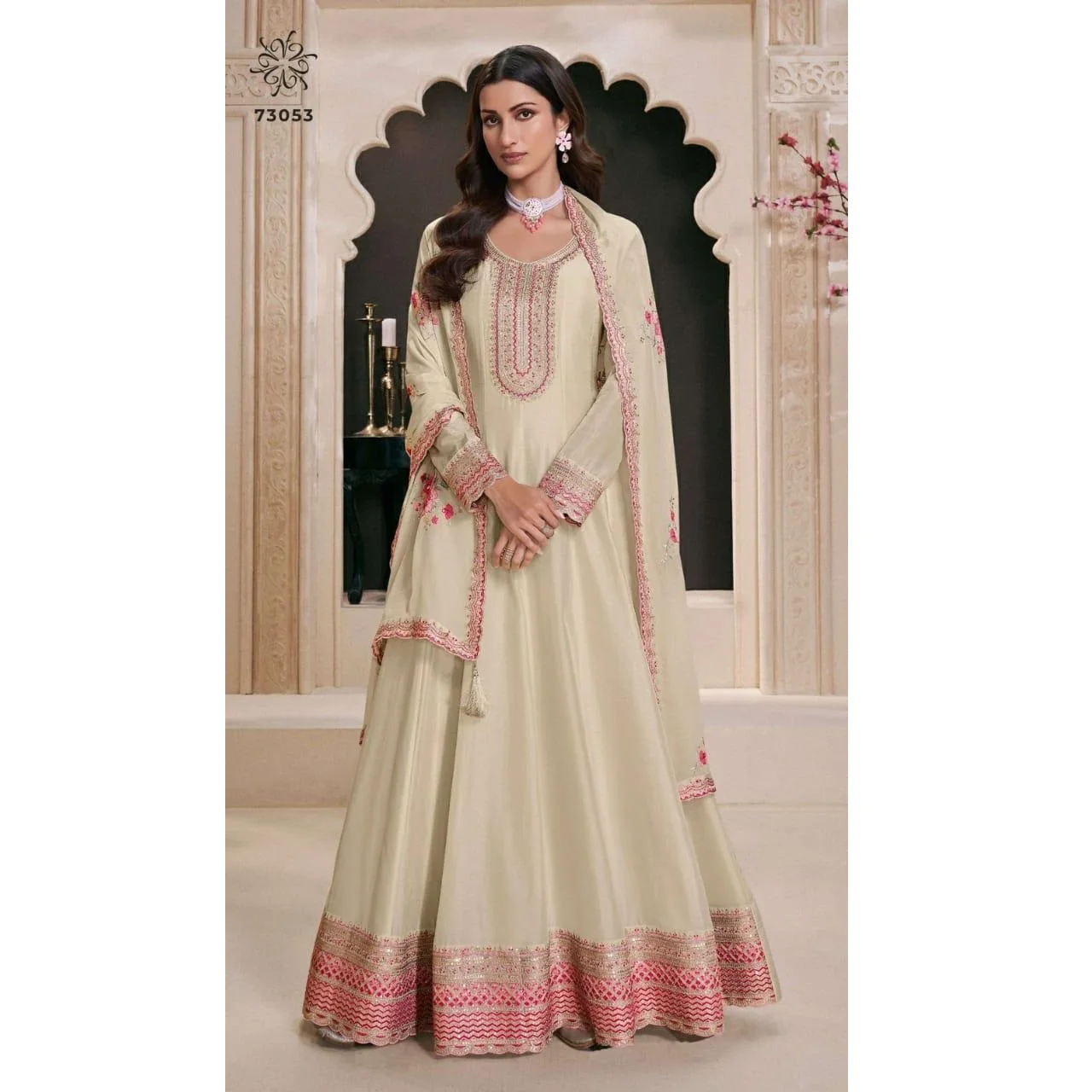 Product Name: Diwali Festive Anarkali Fancy Suit Set Western Embroidery Work Suit with Multi Thread Sequence Embroidery and Moti Work