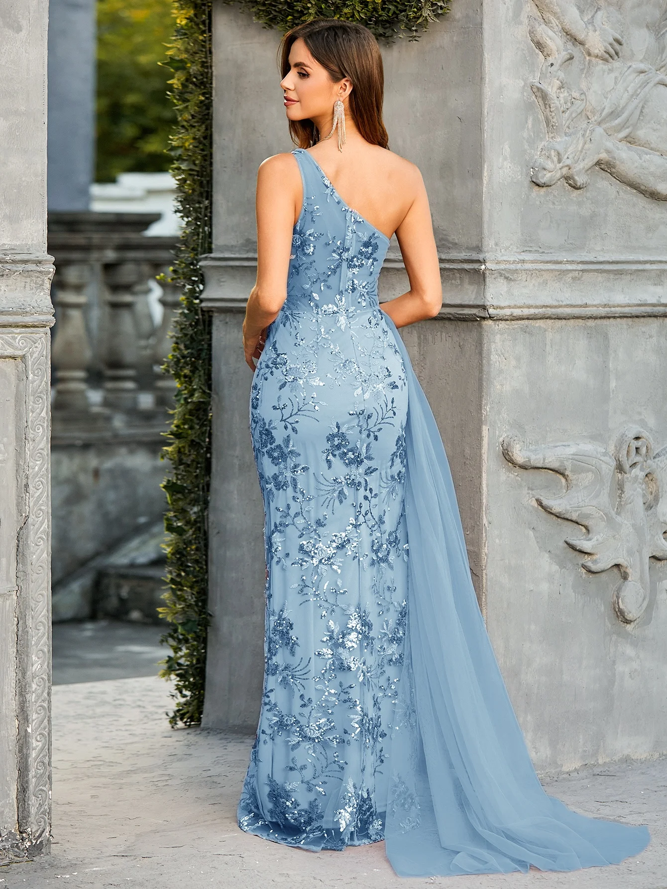 Product Name: Double Crazy Women’S Sequin Patchwork One Shoulder High Slit Evening Party Dress